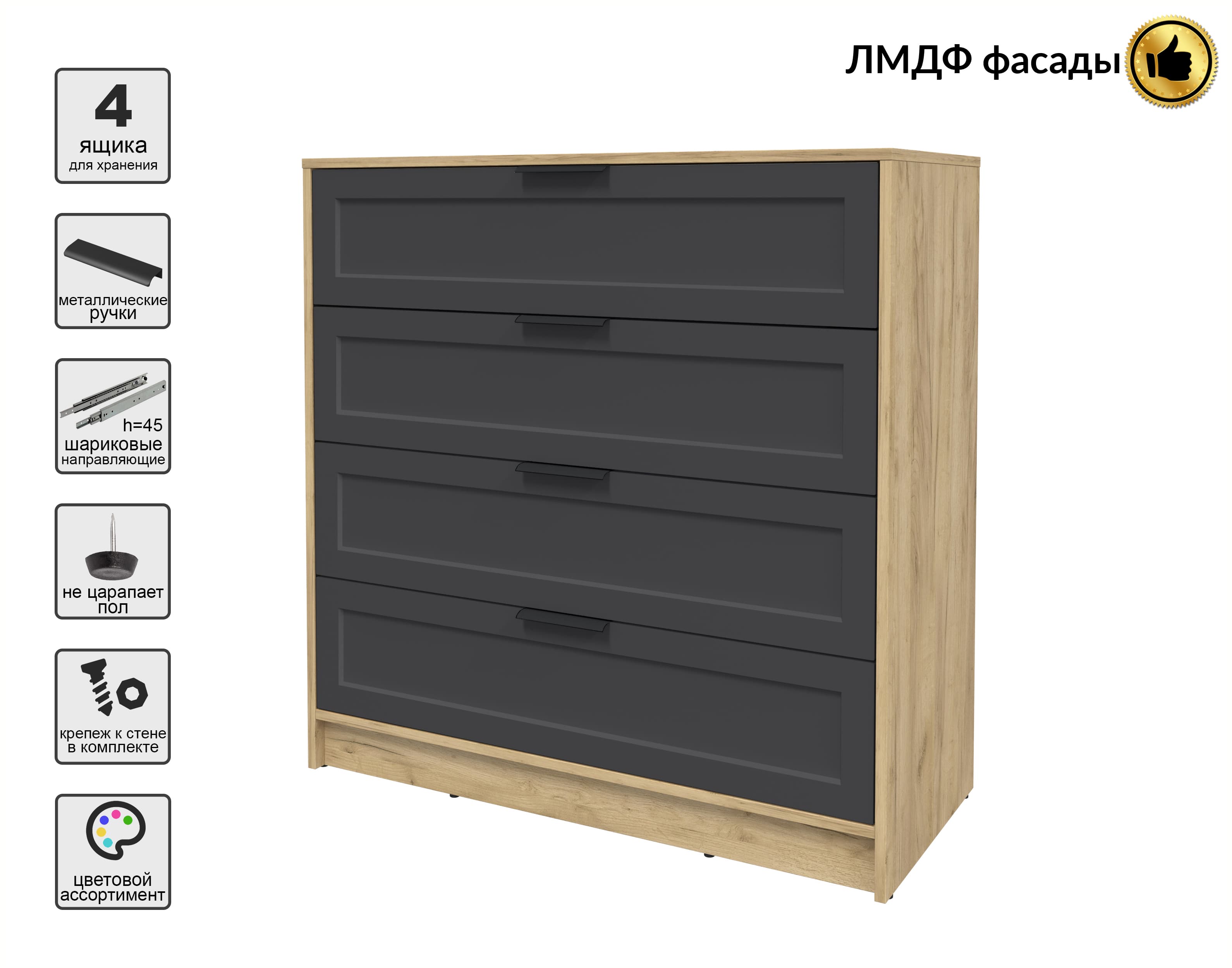 Kомод Тренд КТ-К100 (Дуб золотой ЛДСП/ Пепел ЛМДФ) Ш1000 В1020 Г451
