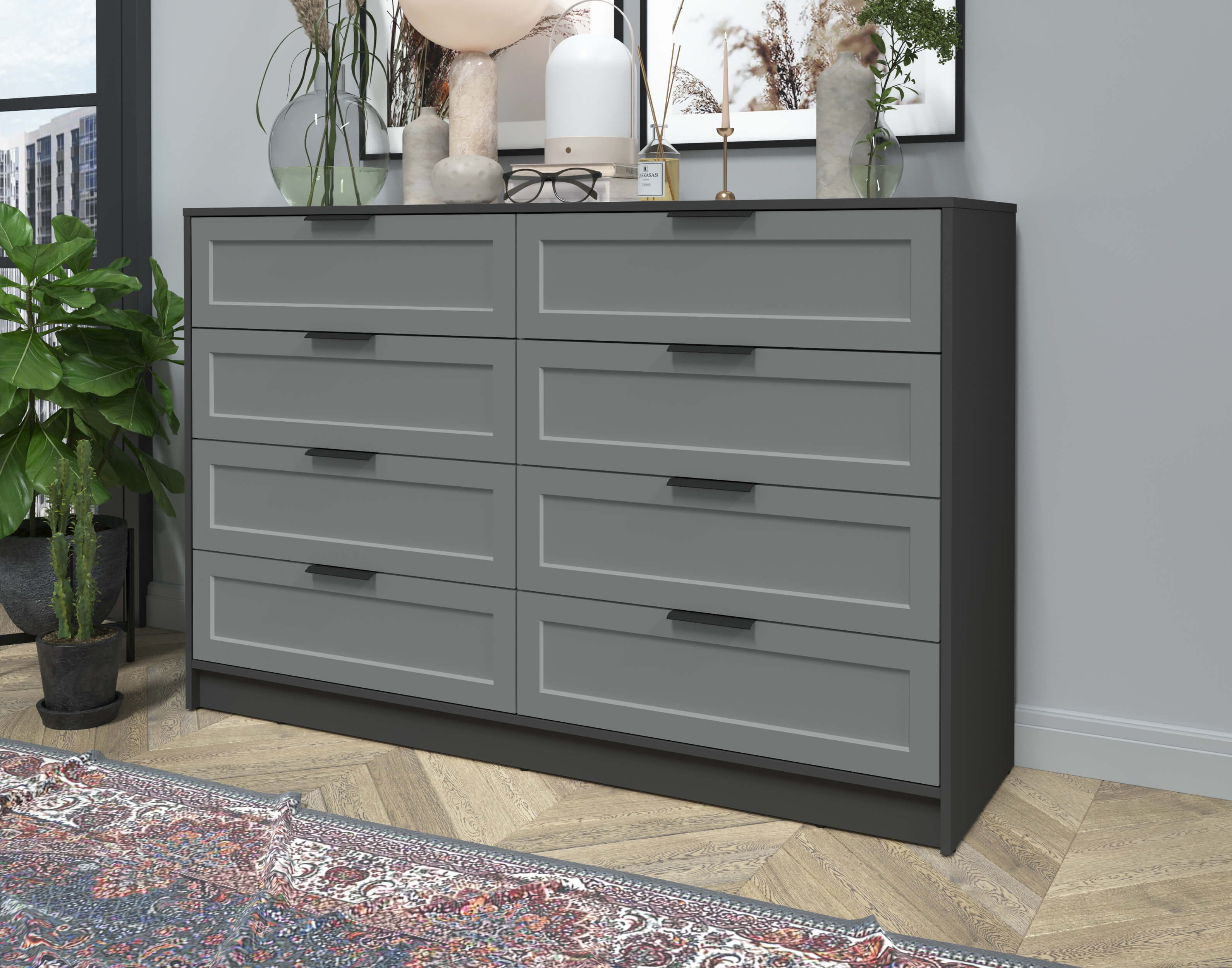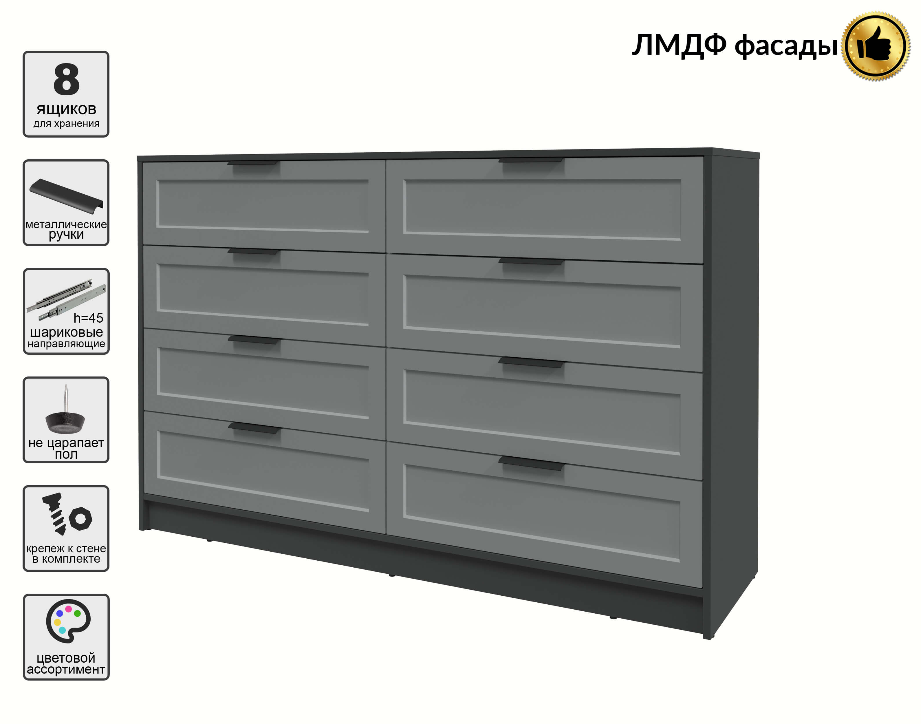 Kомод Тренд КТ-К157 (Антрацит ЛДСП/ Серый ЛМДФ) Ш1565 В1020 Г451