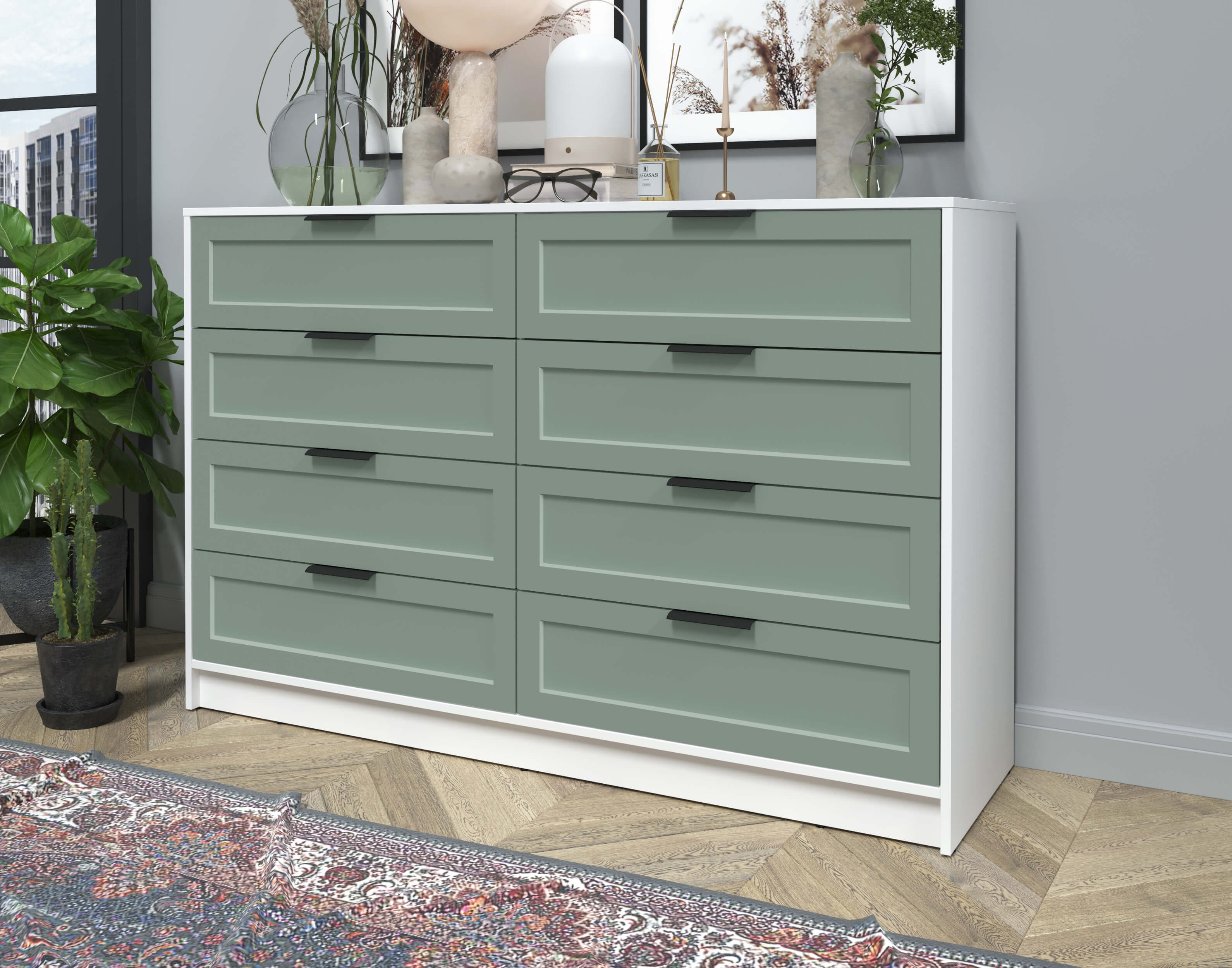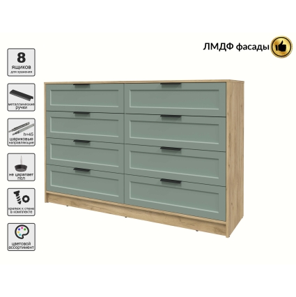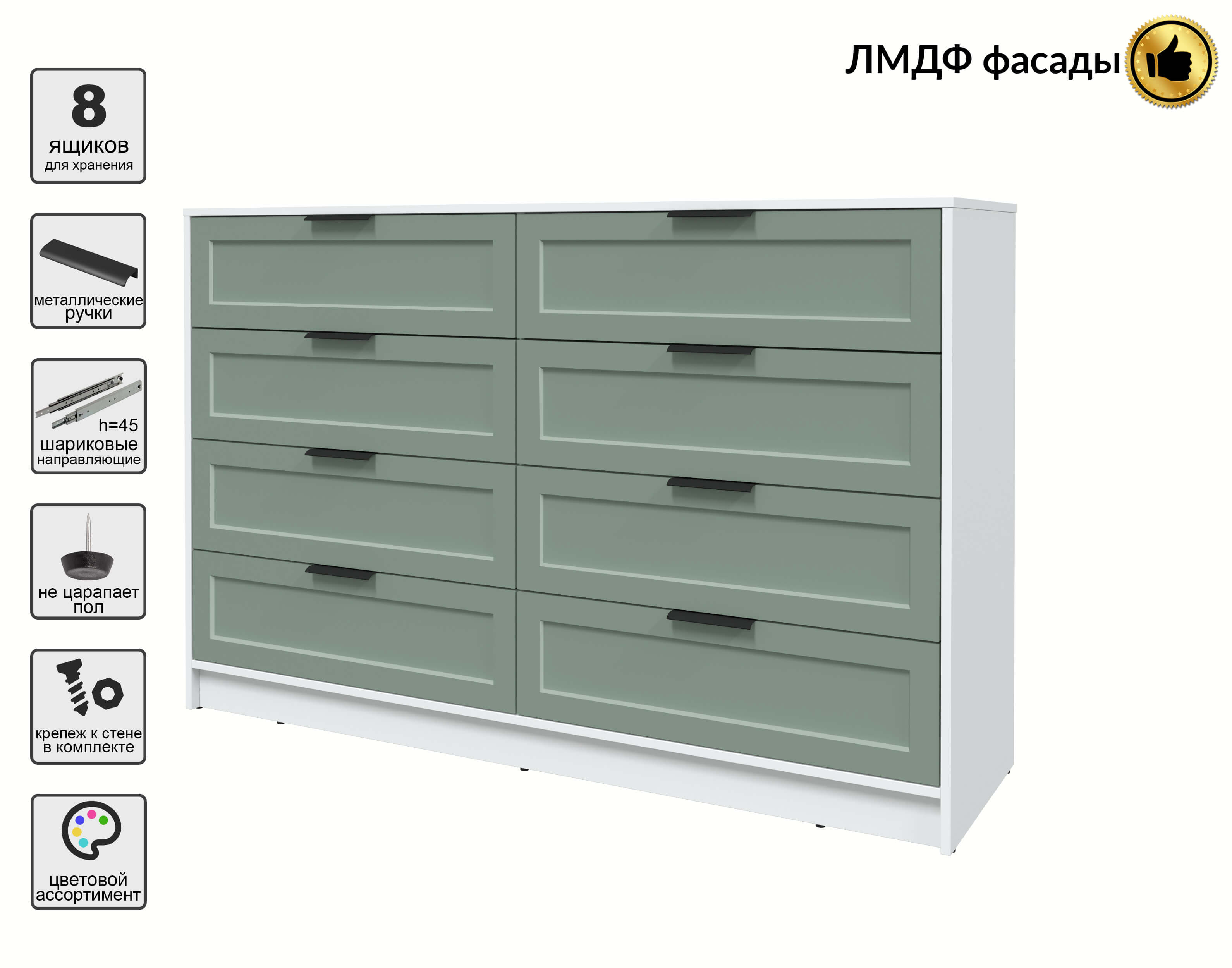 Kомод Тренд КТ-К157 (Белый платинум ЛДСП/ Мята ЛМДФ) Ш1565 В1020 Г451