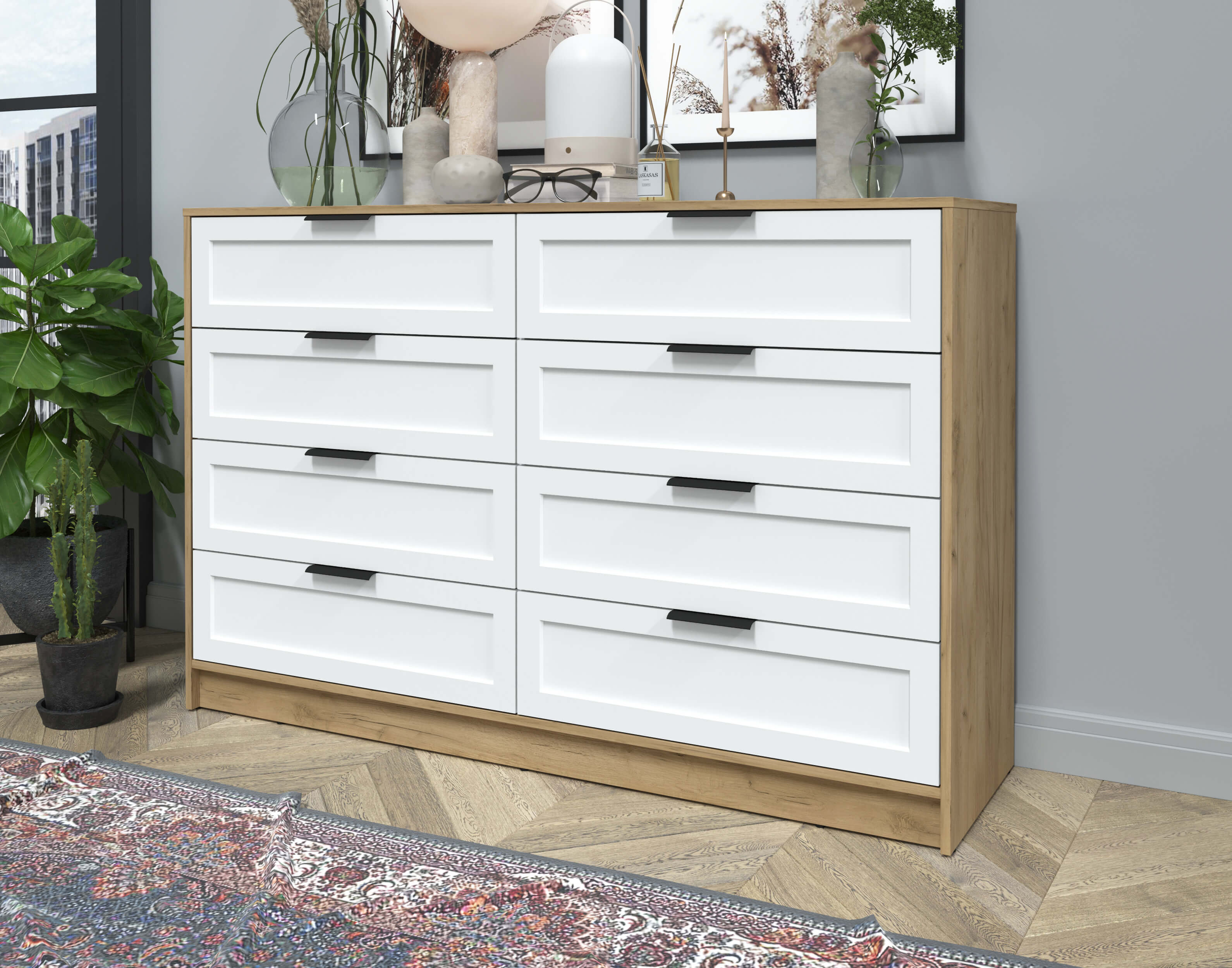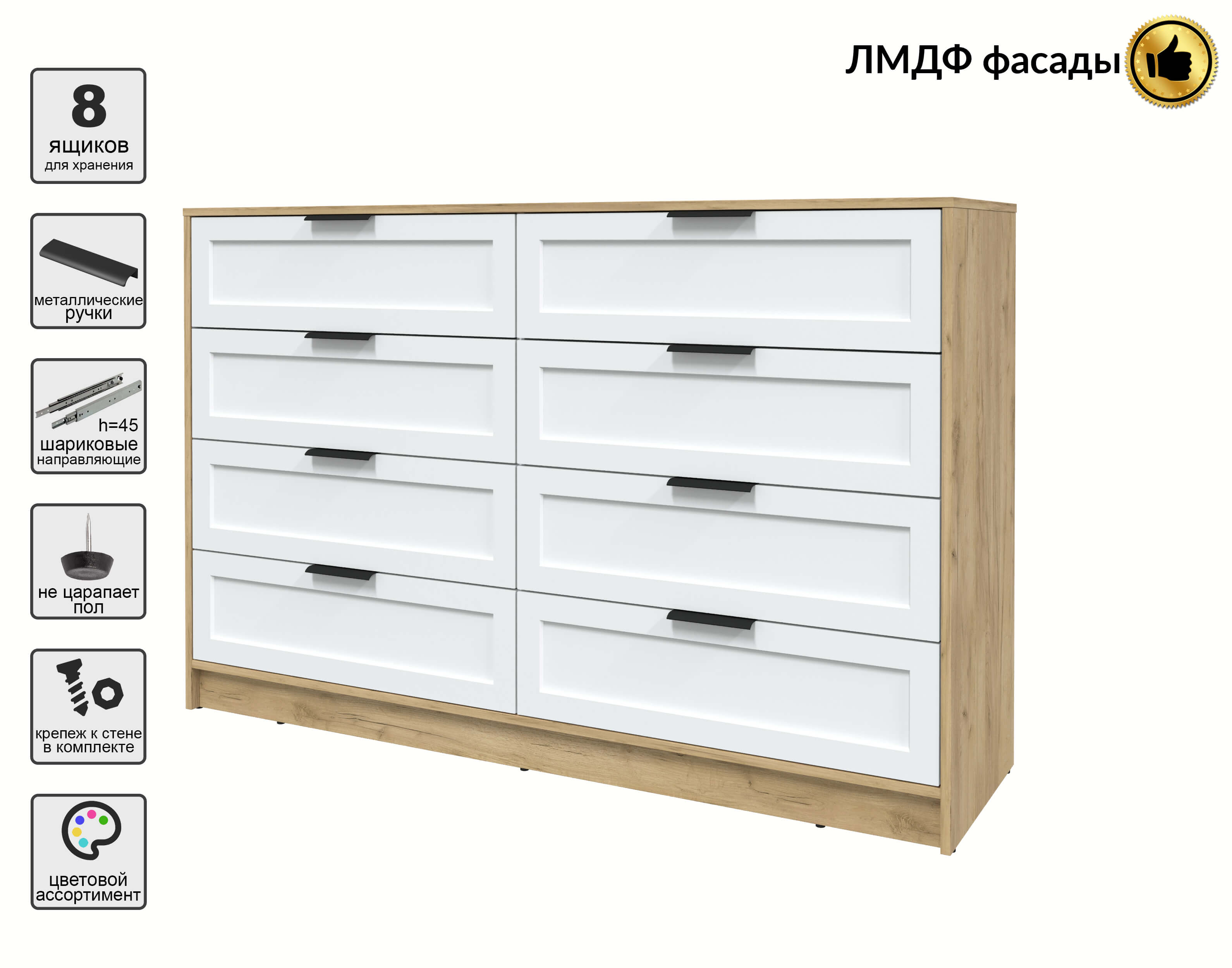 Kомод Тренд КТ-К157 (Дуб золотой ЛДСП/ Белый ЛМДФ) Ш1565 В1020 Г451