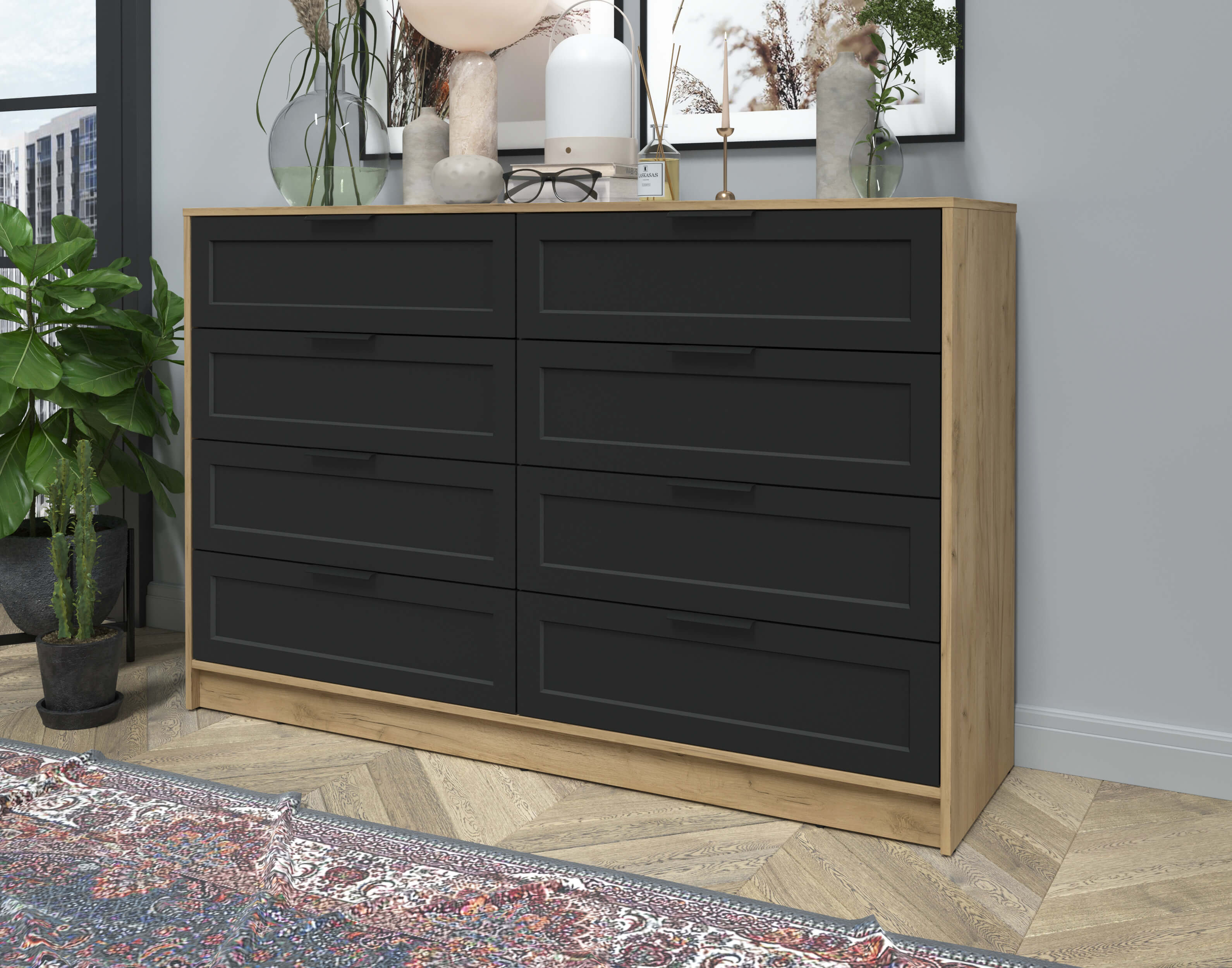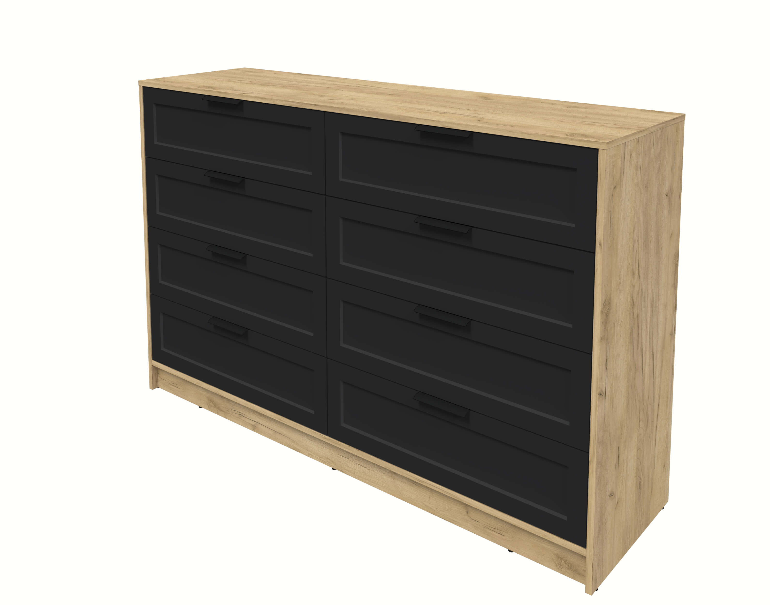 Kомод Тренд КТ-К157 (Дуб золотой ЛДСП/ Черный ЛМДФ) Ш1565 В1020 Г451