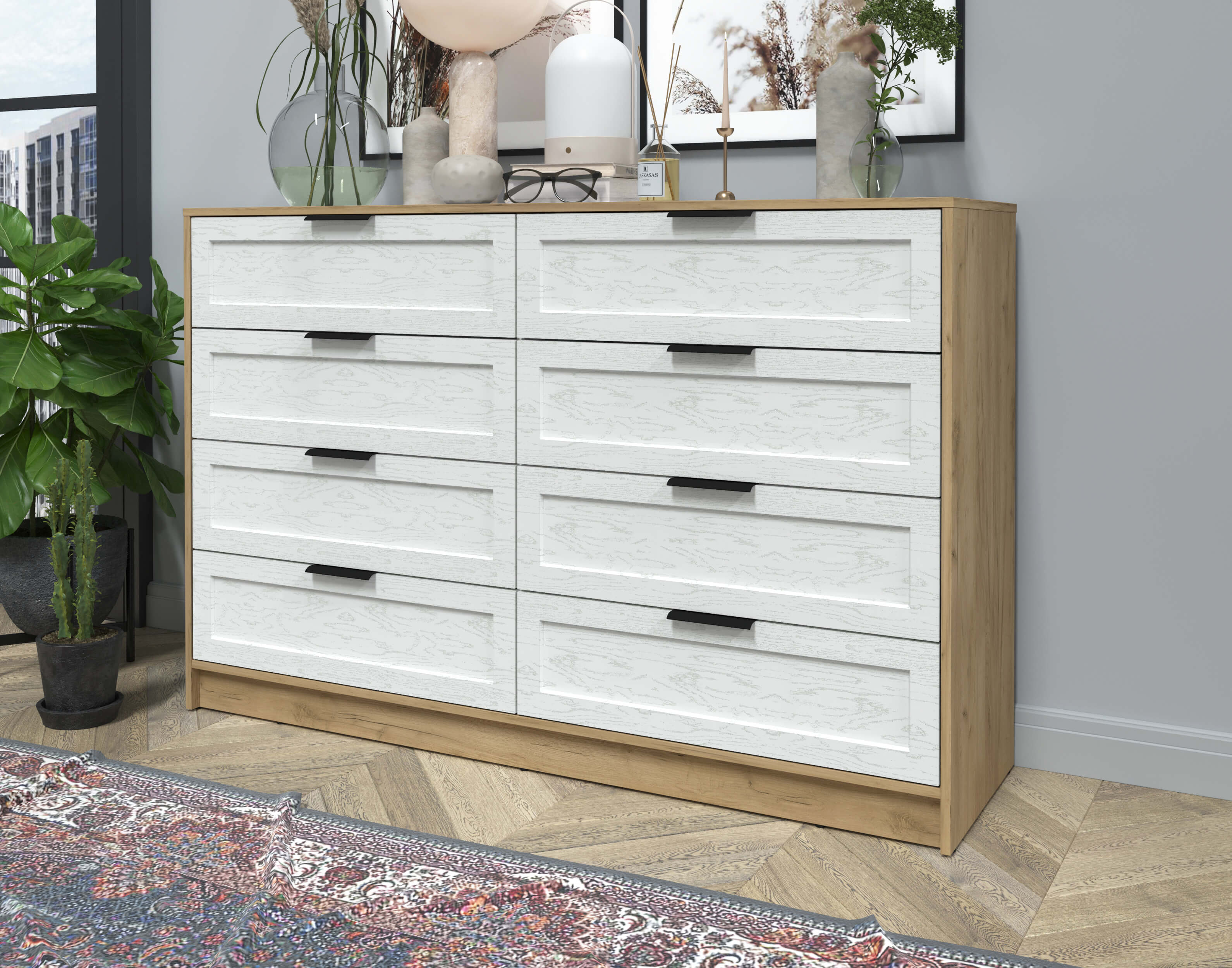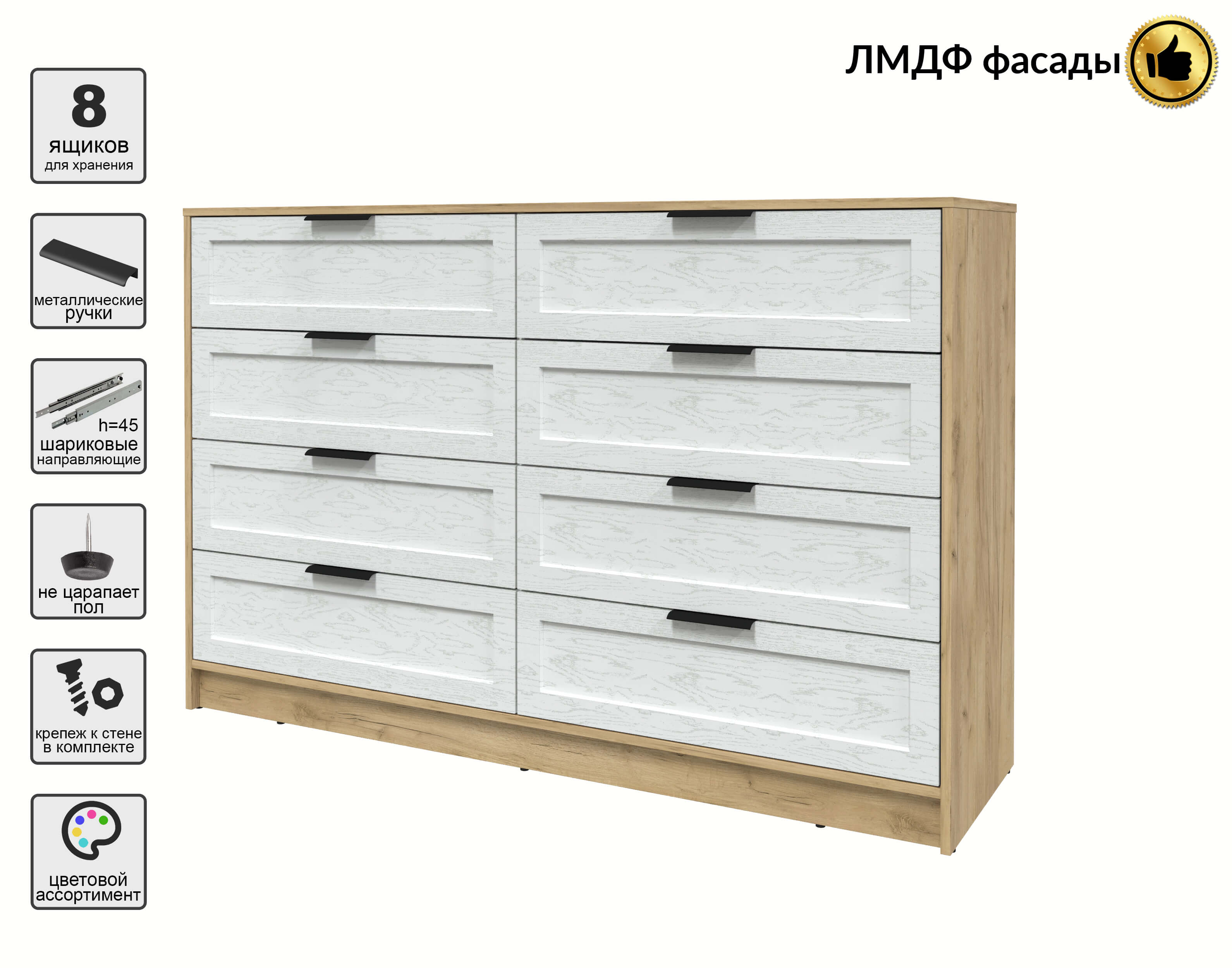 Kомод Тренд КТ-К157 (Дуб золотой ЛДСП/ Дуб полярный ЛМДФ) Ш1565 В1020 Г451