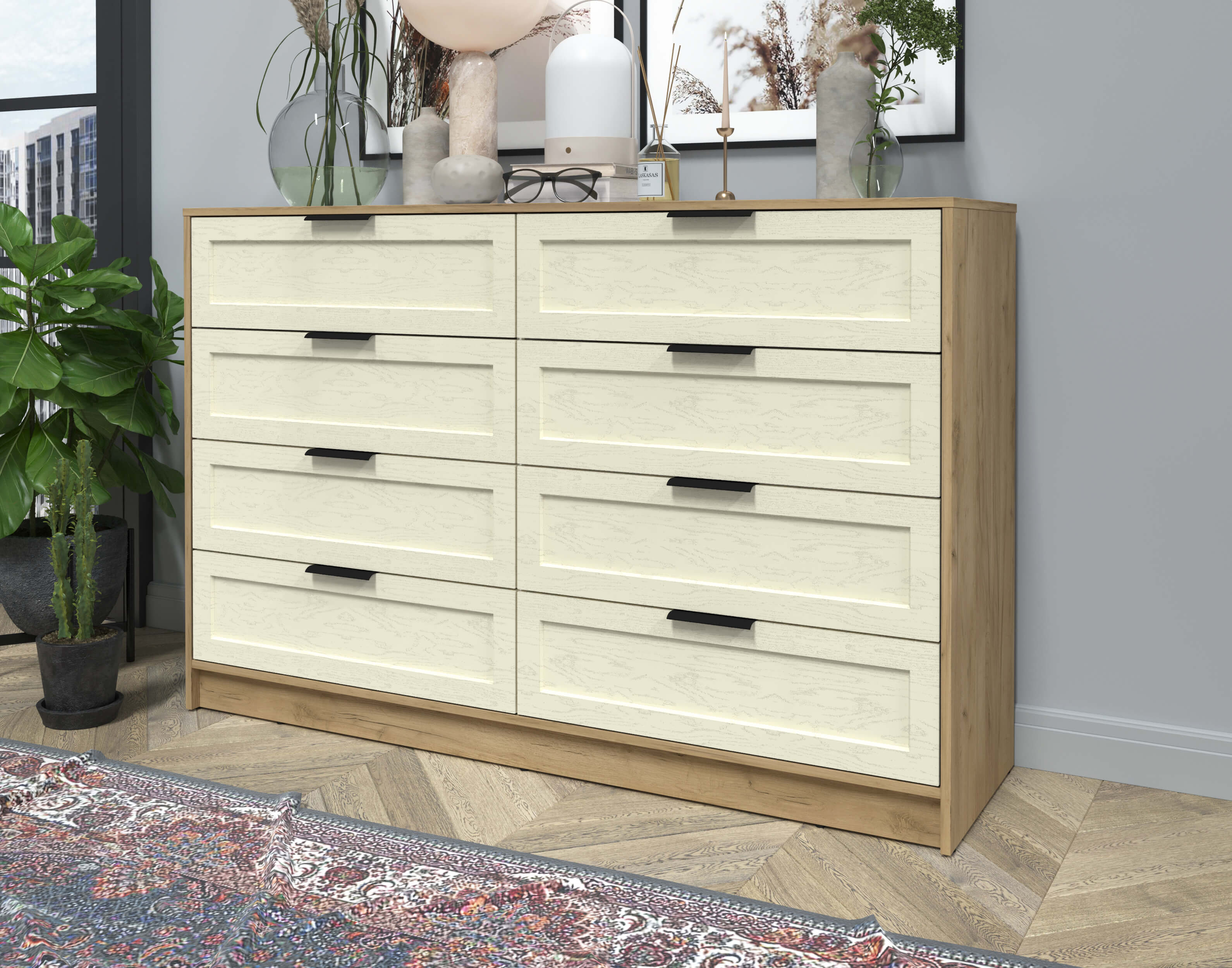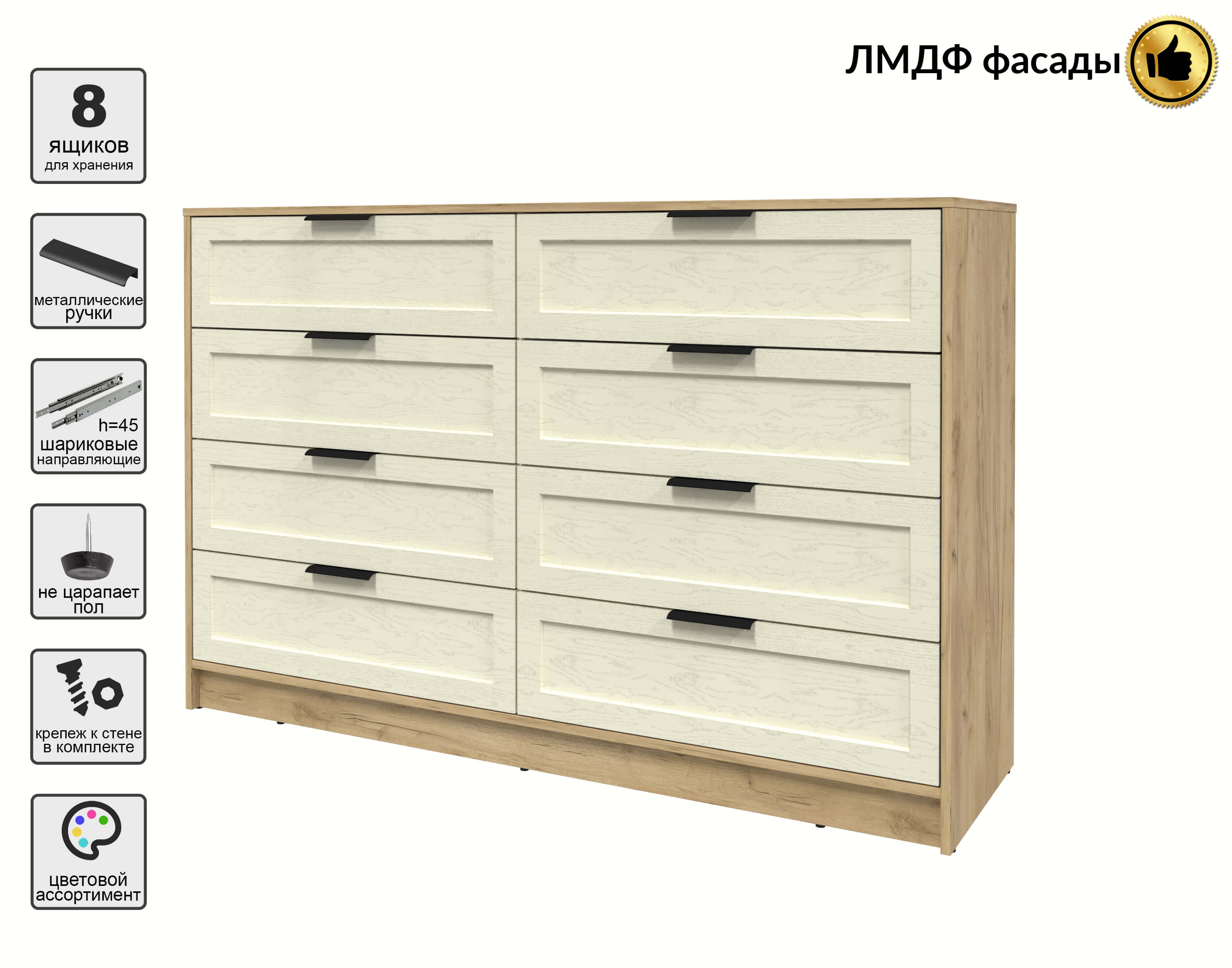 Kомод Тренд КТ-К157 (Дуб золотой ЛДСП/ Дуб снежный ЛМДФ) Ш1565 В1020 Г451