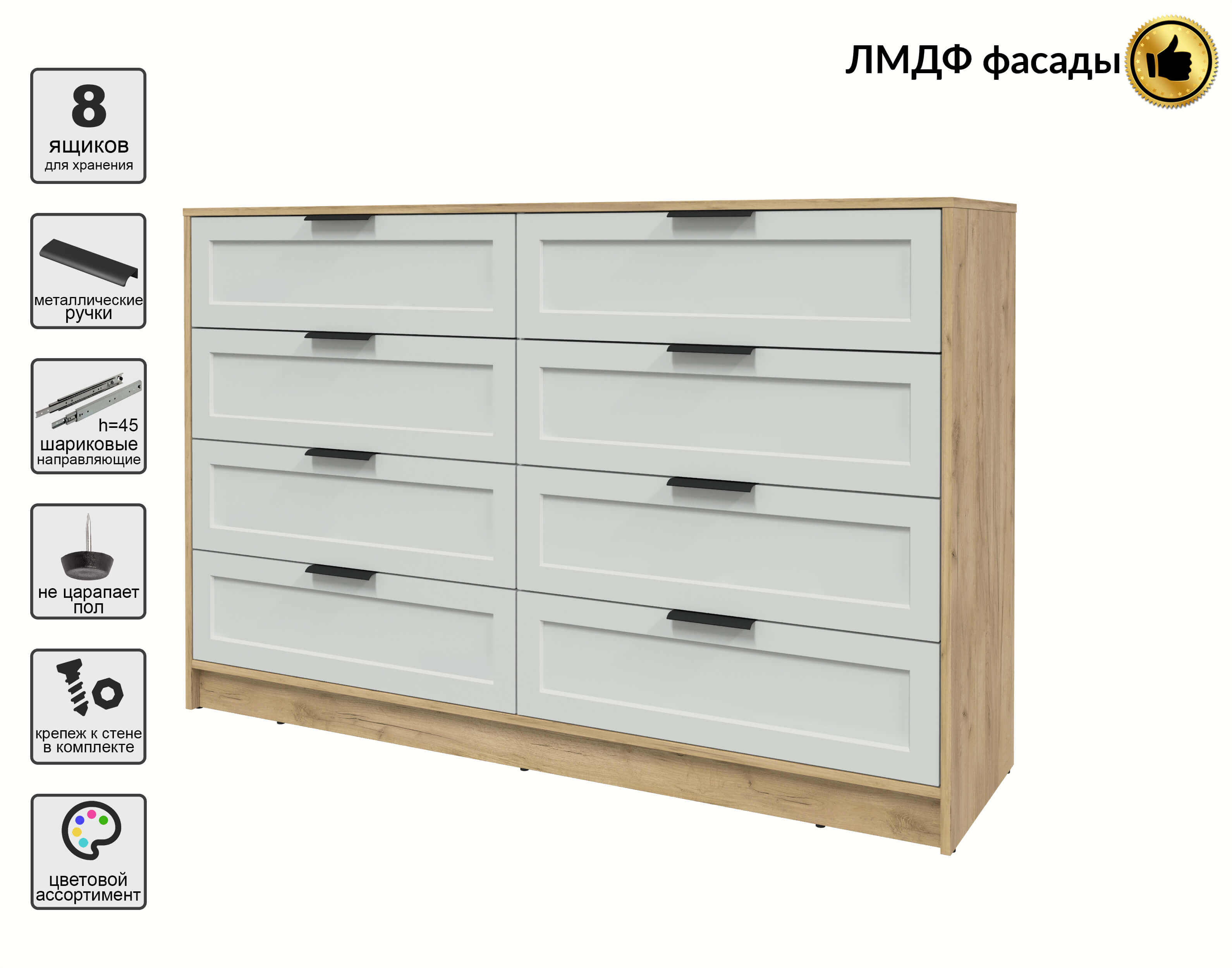 Kомод Тренд КТ-К157 (Дуб золотой ЛДСП/ Грэй ЛМДФ) Ш1565 В1020 Г451