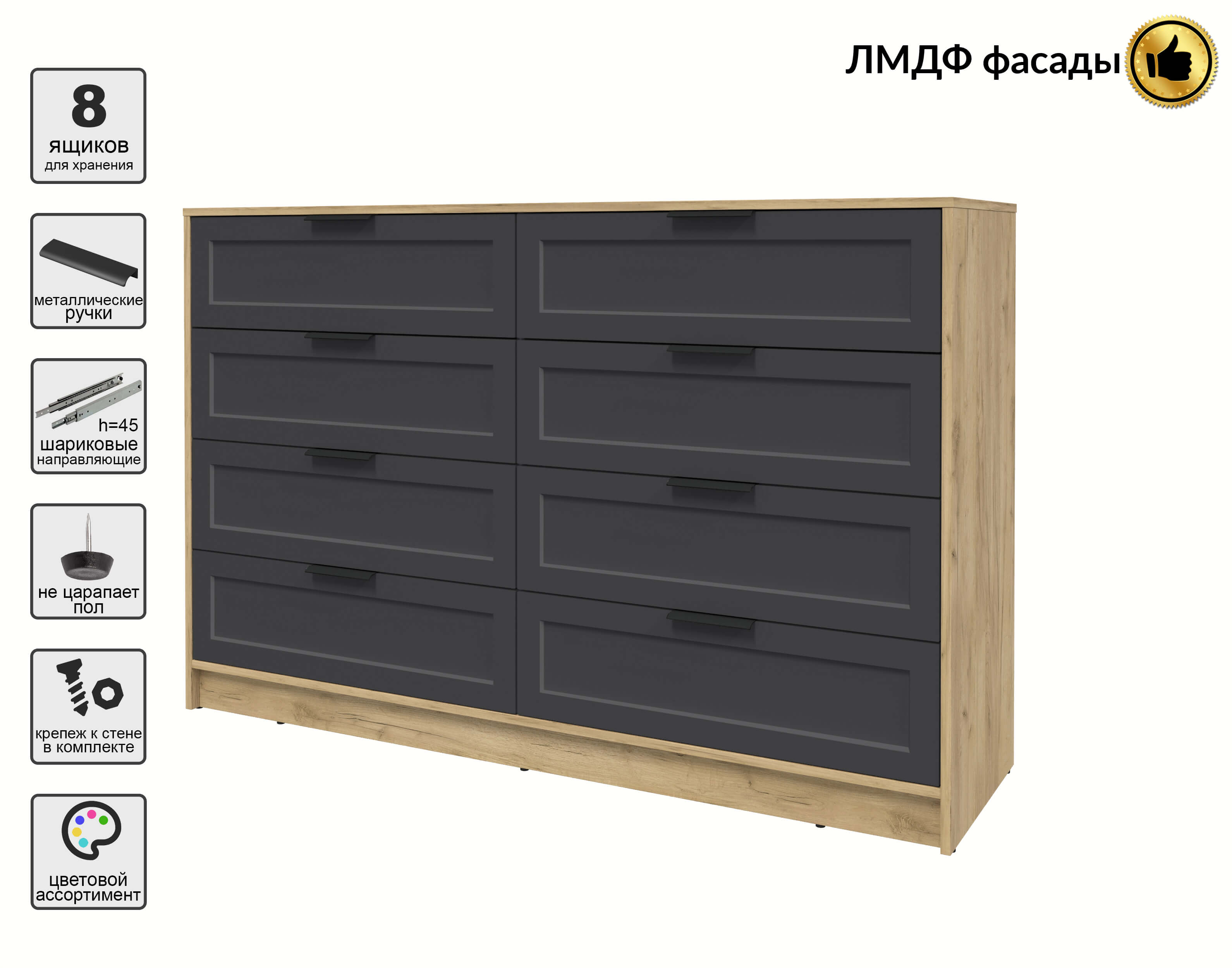 Kомод Тренд КТ-К157 (Дуб золотой ЛДСП/ Пепел ЛМДФ) Ш1565 В1020 Г451