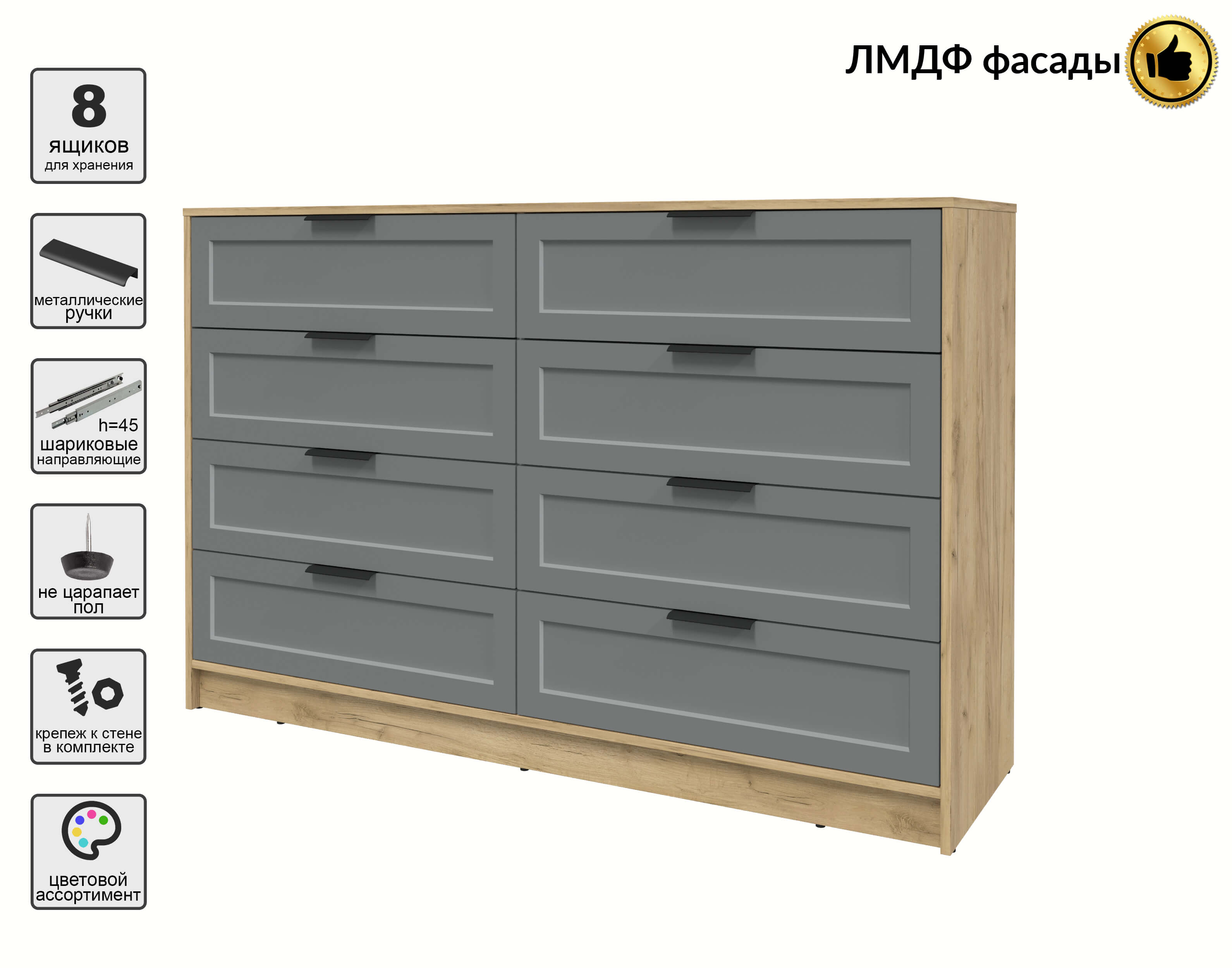 Kомод Тренд КТ-К157 (Дуб золотой ЛДСП/ Серый ЛМДФ) Ш1565 В1020 Г451