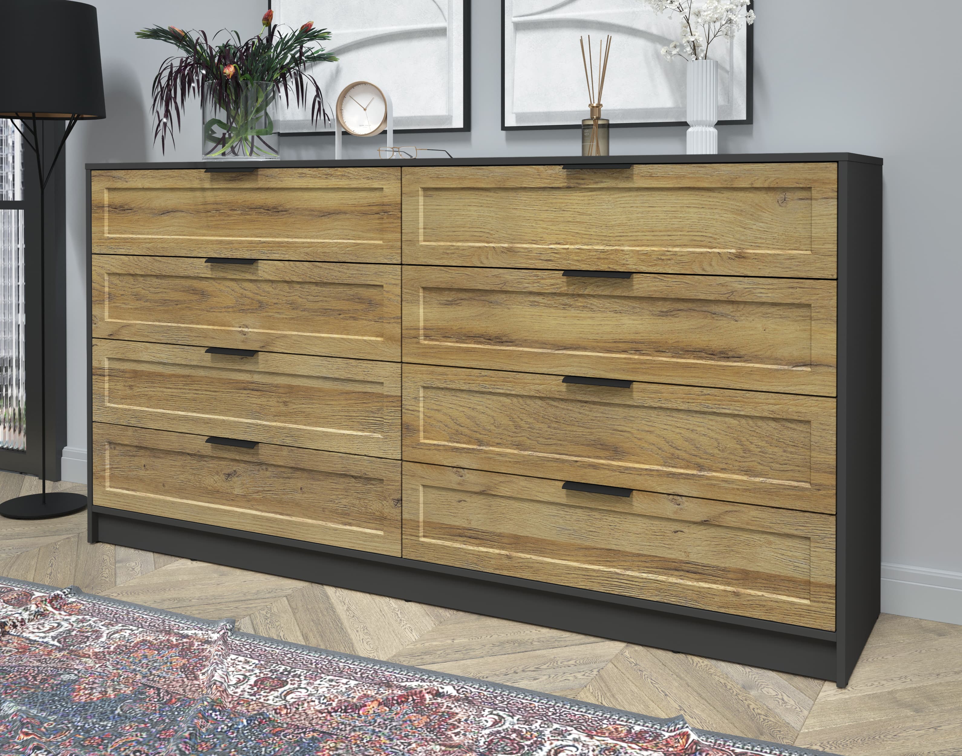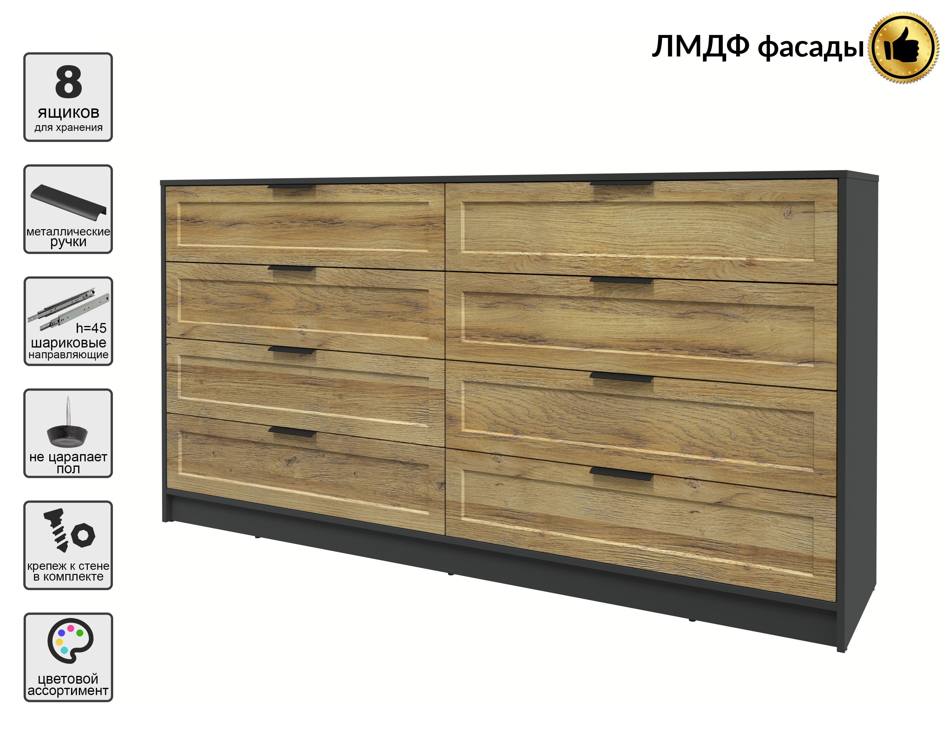 Kомод Тренд КТ-К197 (Антрацит ЛДСП/ Дуб вотан ЛМДФ) Ш1965 В1020 Г451