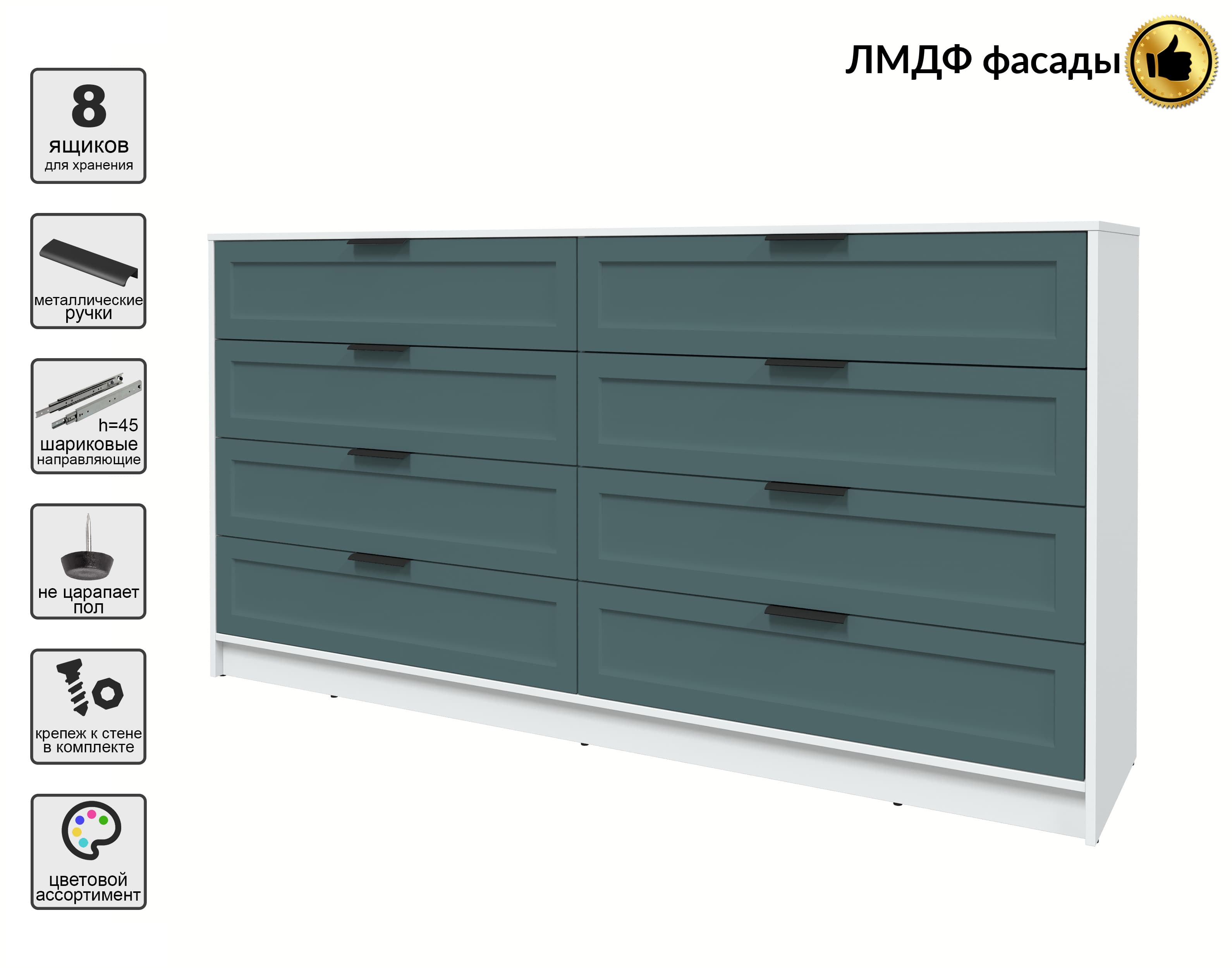Kомод Тренд КТ-К197 (Белый ЛДСП/ Верде ЛМДФ) Ш1965 В1020 Г451