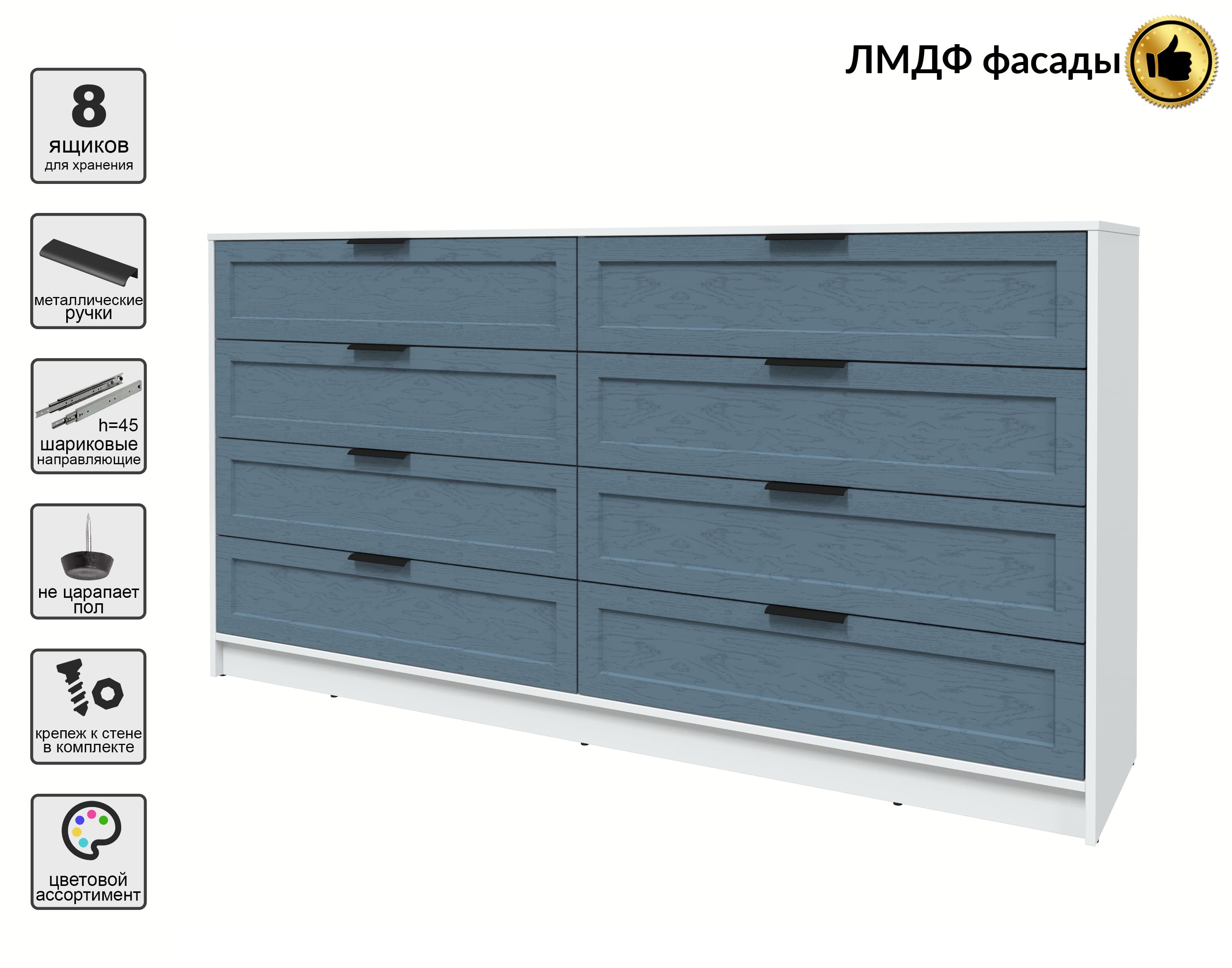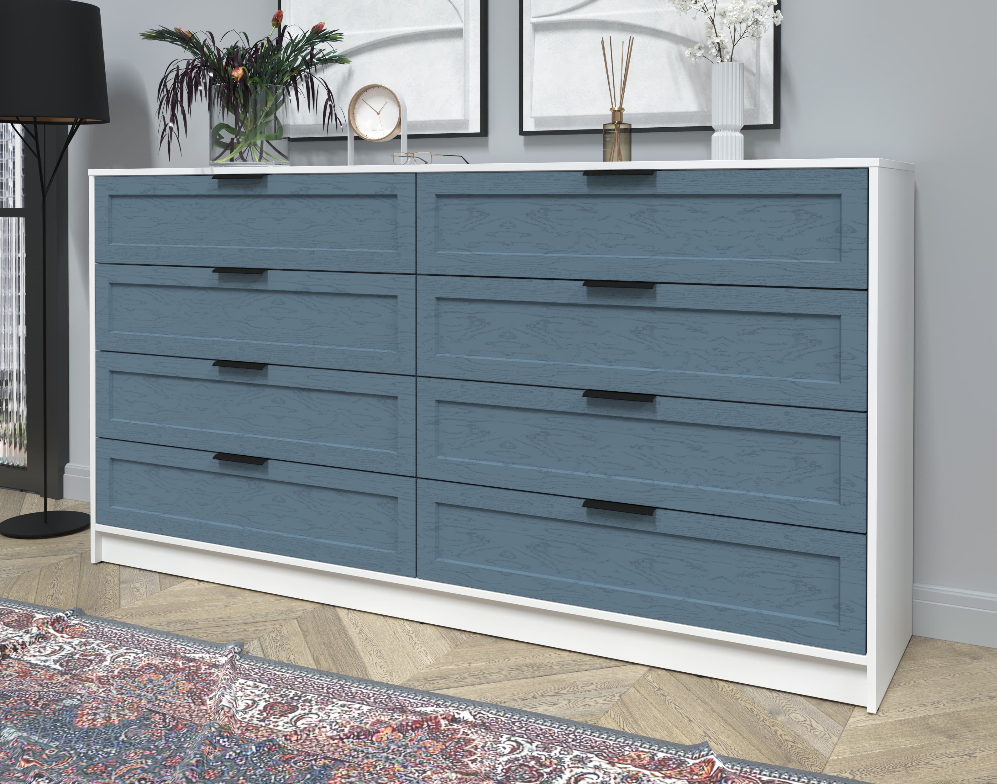 Kомод Тренд КТ-К197 (Белый ЛДСП/ Дуб лазурный ЛМДФ) Ш1965 В1020 Г451