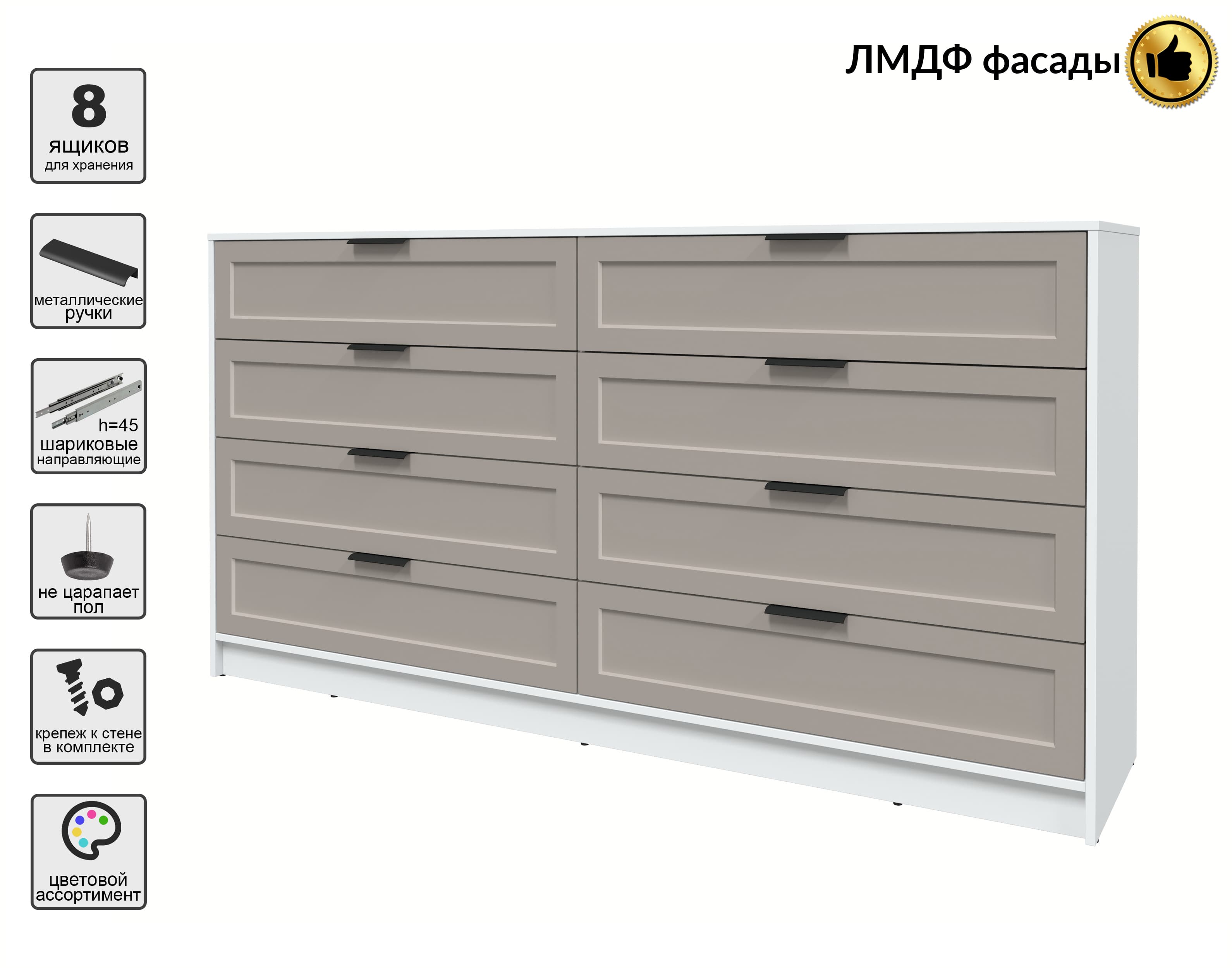 Kомод Тренд КТ-К197 (Белый ЛДСП/ Луна ЛМДФ) Ш1965 В1020 Г451