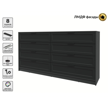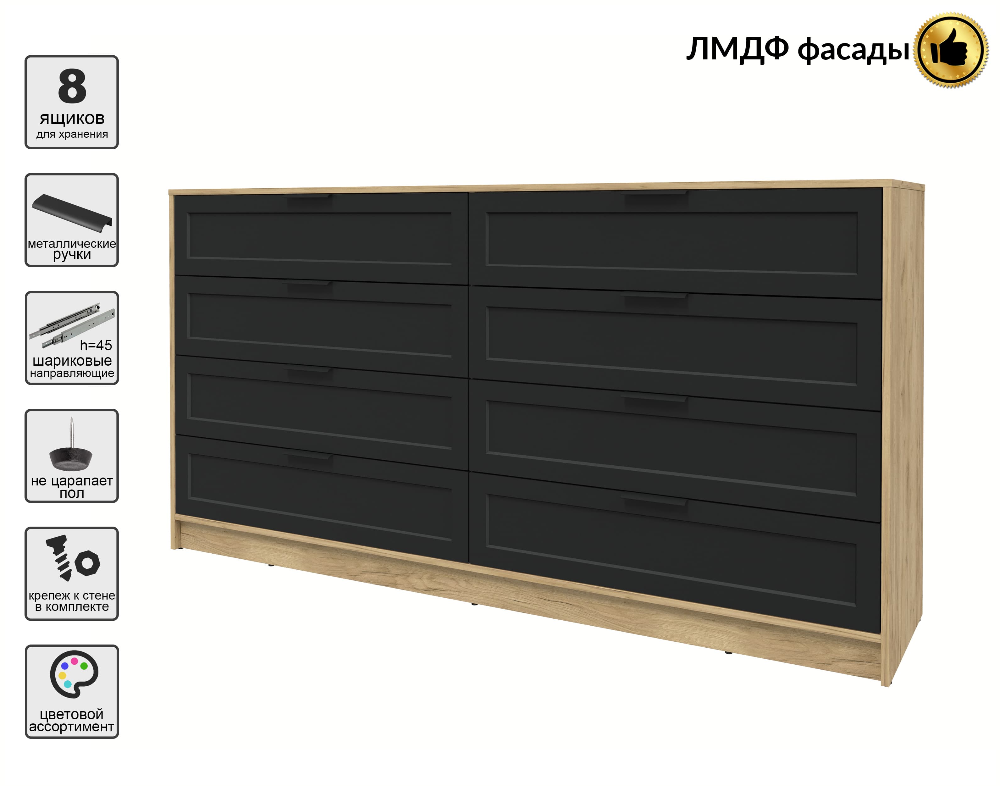 Kомод Тренд КТ-К197 (Дуб золотой ЛДСП/ Черный ЛМДФ) Ш1965 В1020 Г451