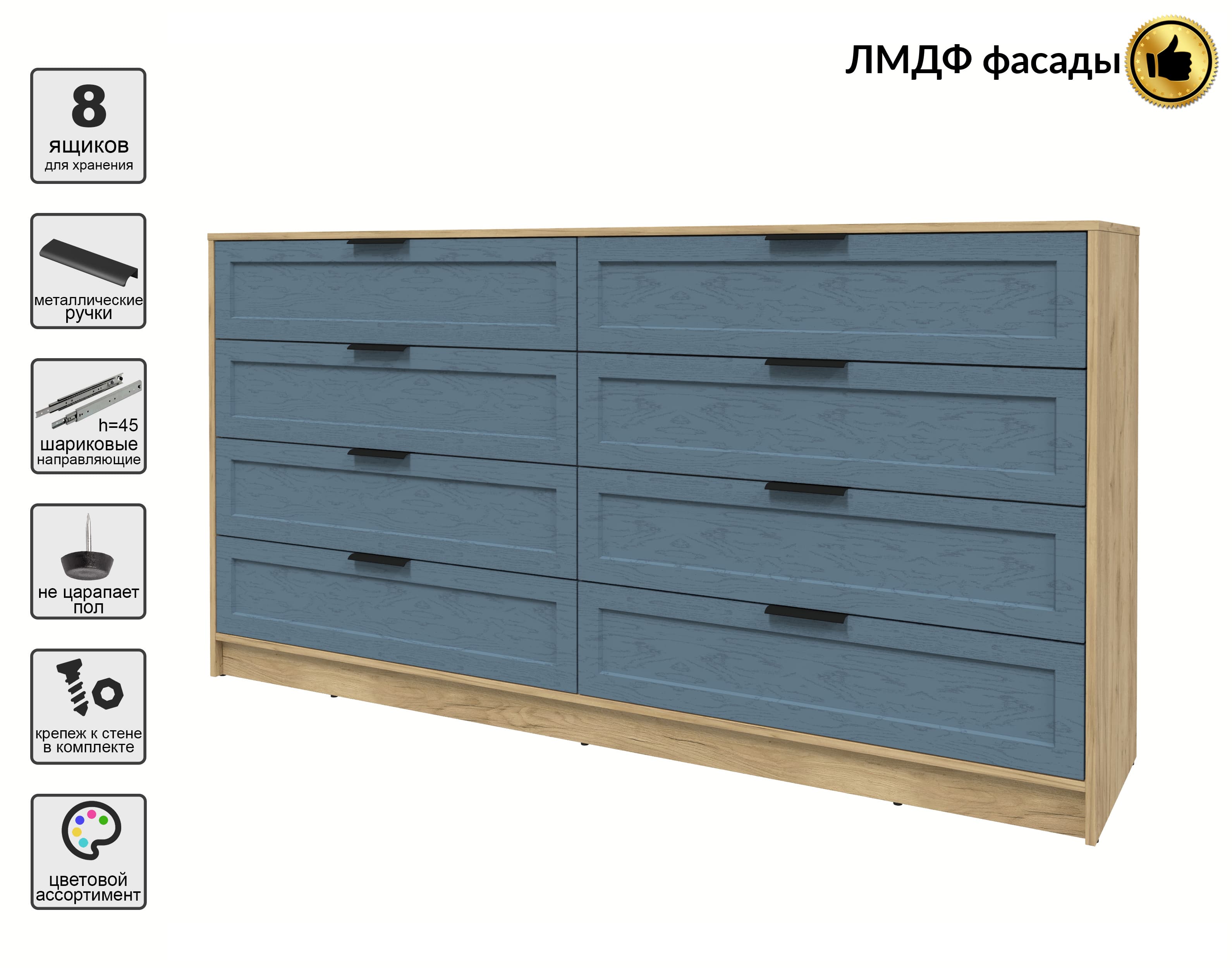Kомод Тренд КТ-К197 (Дуб золотой ЛДСП/ Дуб лазурный ЛМДФ) Ш1965 В1020 Г451