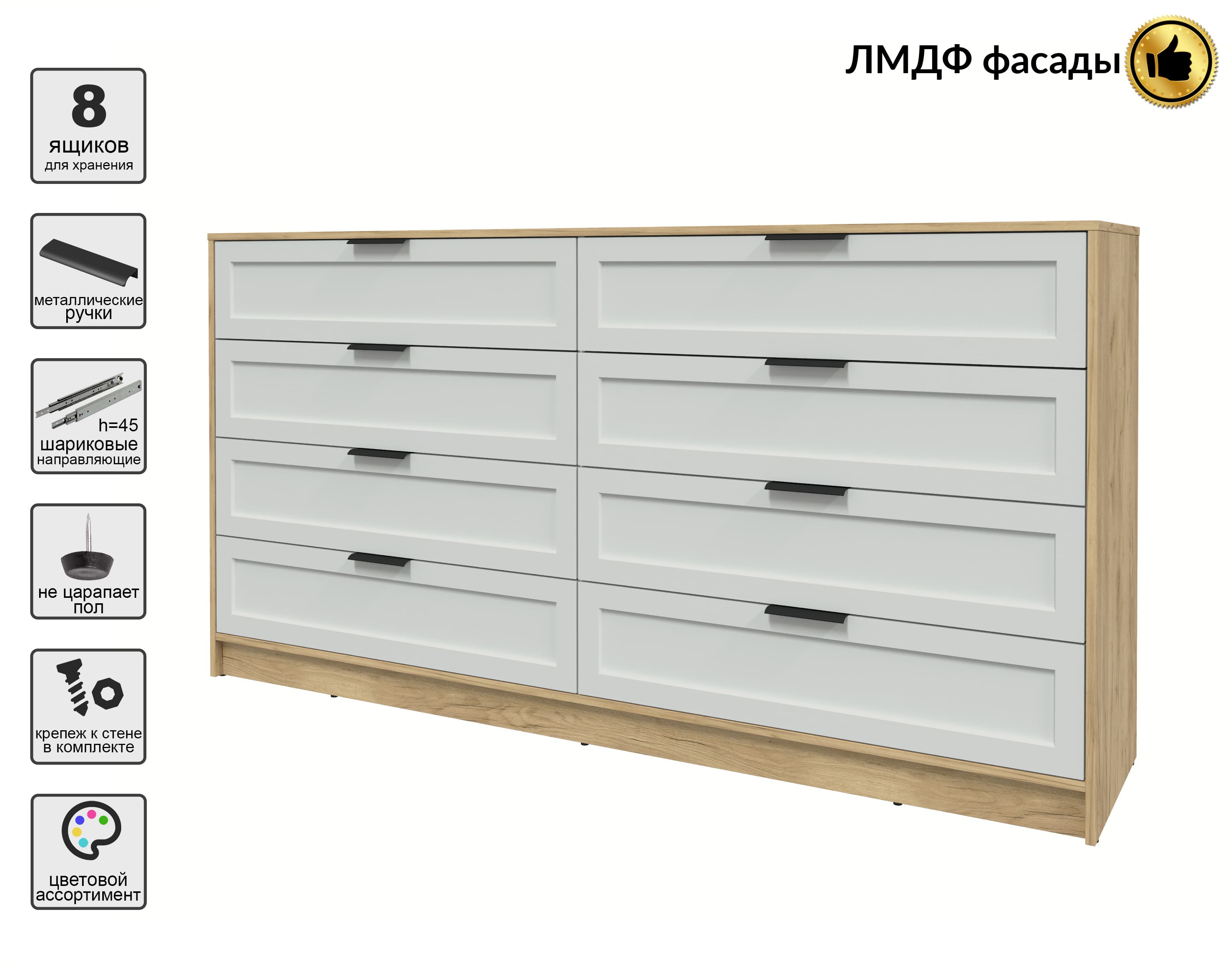 Kомод Тренд КТ-К197 (Дуб золотой ЛДСП/ Грэй ЛМДФ) Ш1965 В1020 Г451