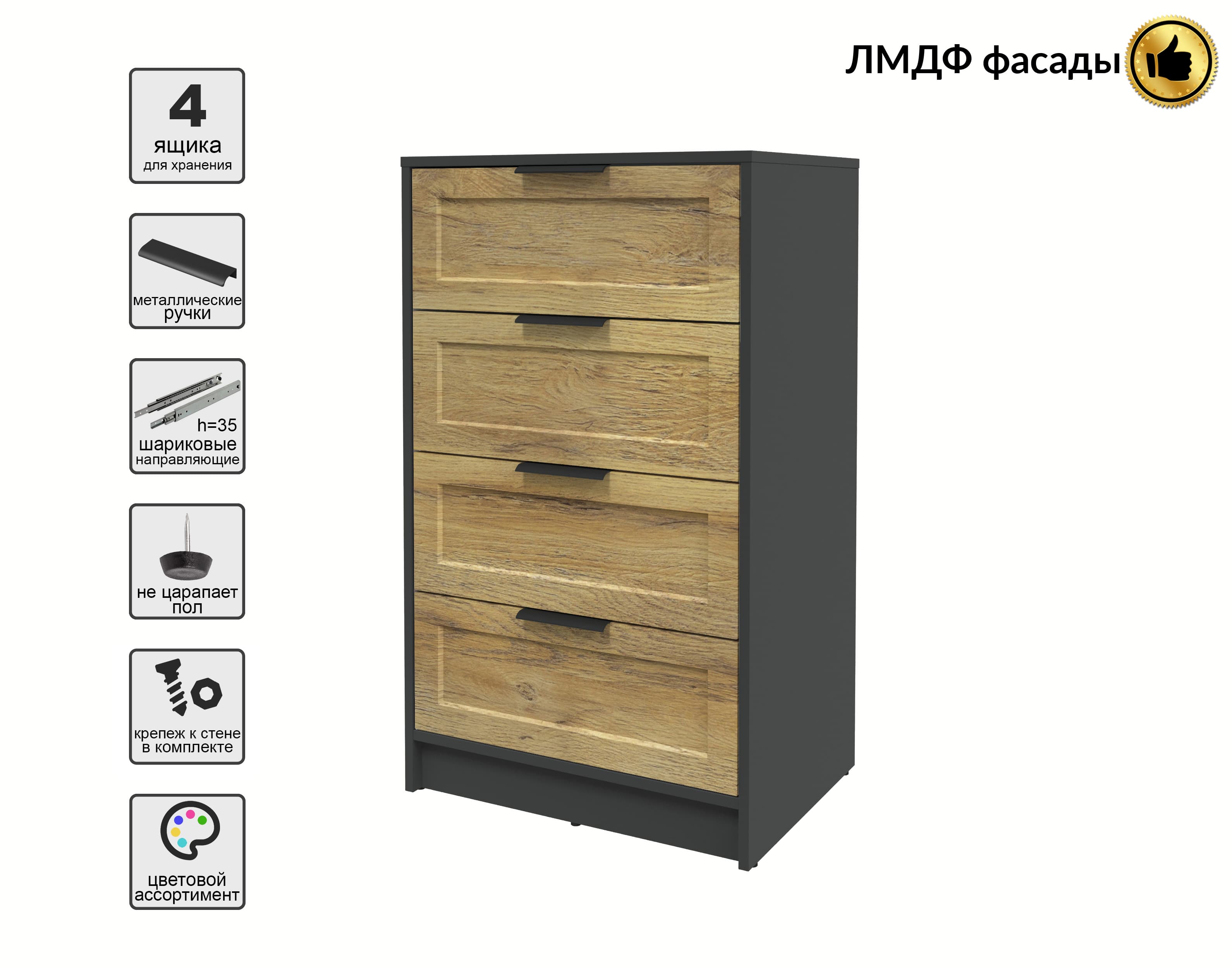 Kомод Тренд КТ-К60 (Антрацит ЛДСП/ Дуб вотан ЛМДФ) Ш600 В1020 Г451