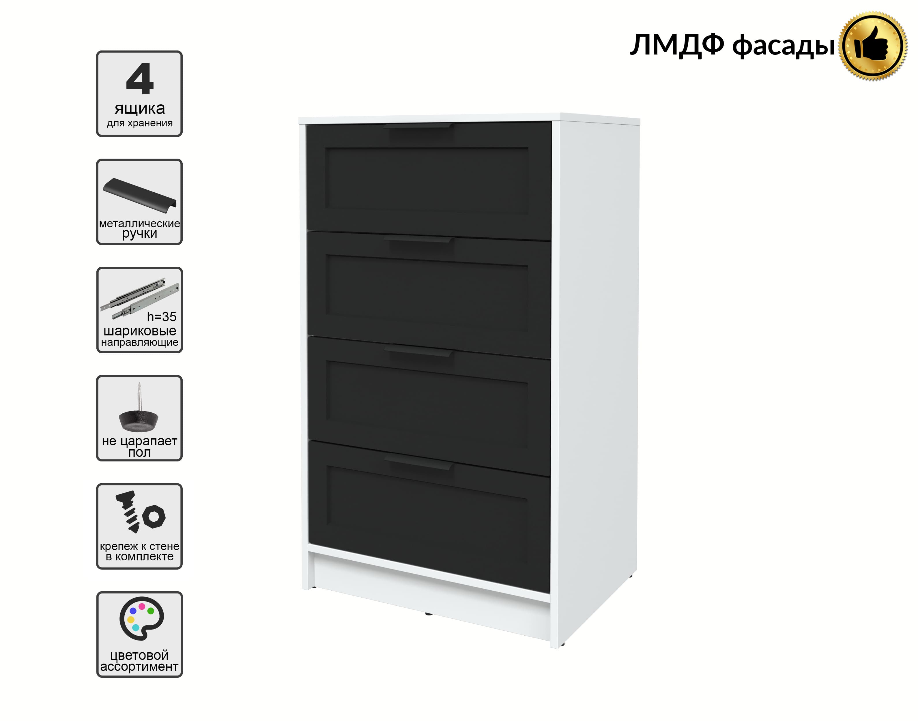 Kомод Тренд КТ-К60 (Белый ЛДСП/ Черный ЛМДФ) Ш600 В1020 Г451