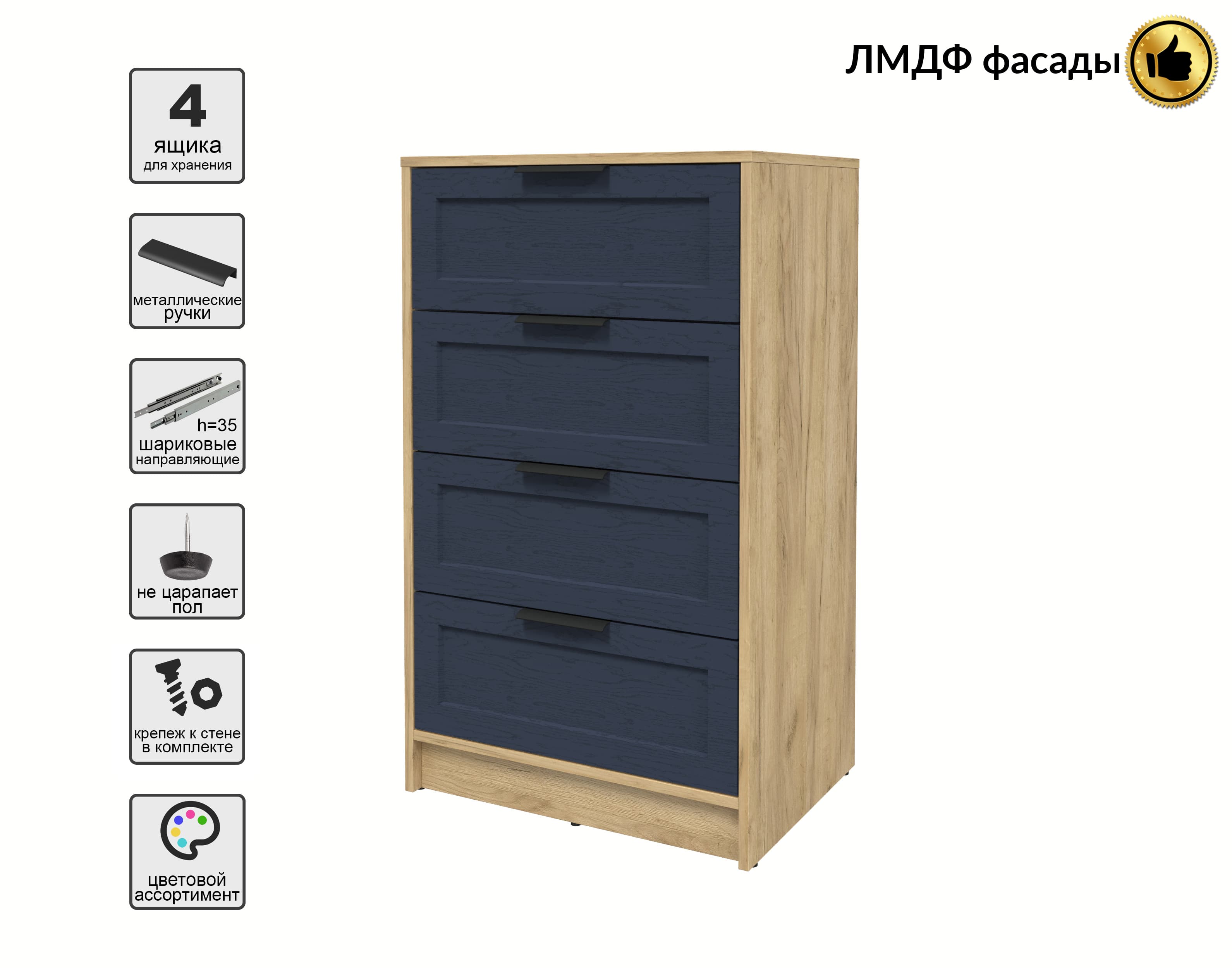 Kомод Тренд КТ-К60 (Дуб золотой ЛДСП/ Дуб королевский ЛМДФ) Ш600 В1020 Г451