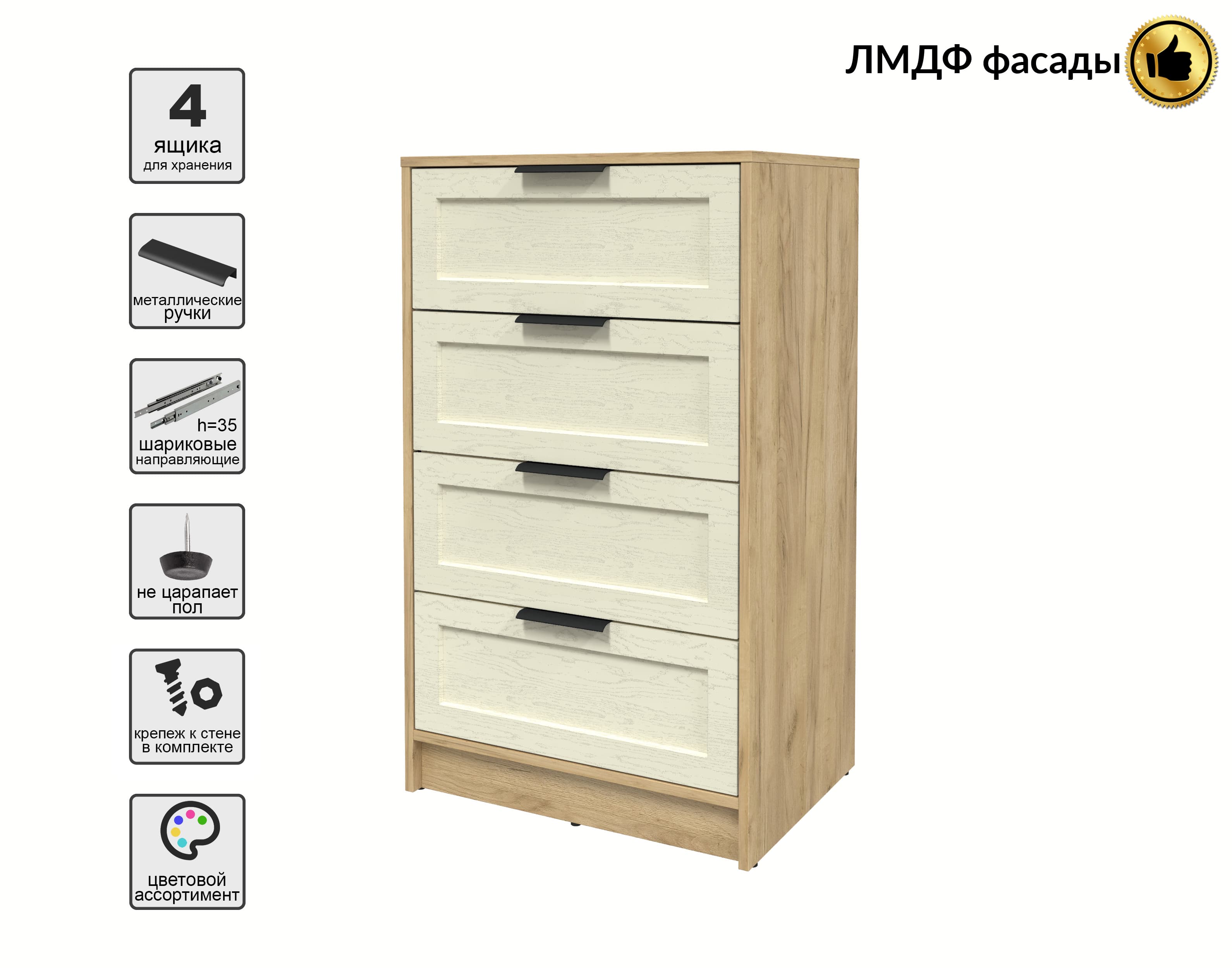 Kомод Тренд КТ-К60 (Дуб золотой ЛДСП/ Дуб снежный ЛМДФ) Ш600 В1020 Г451
