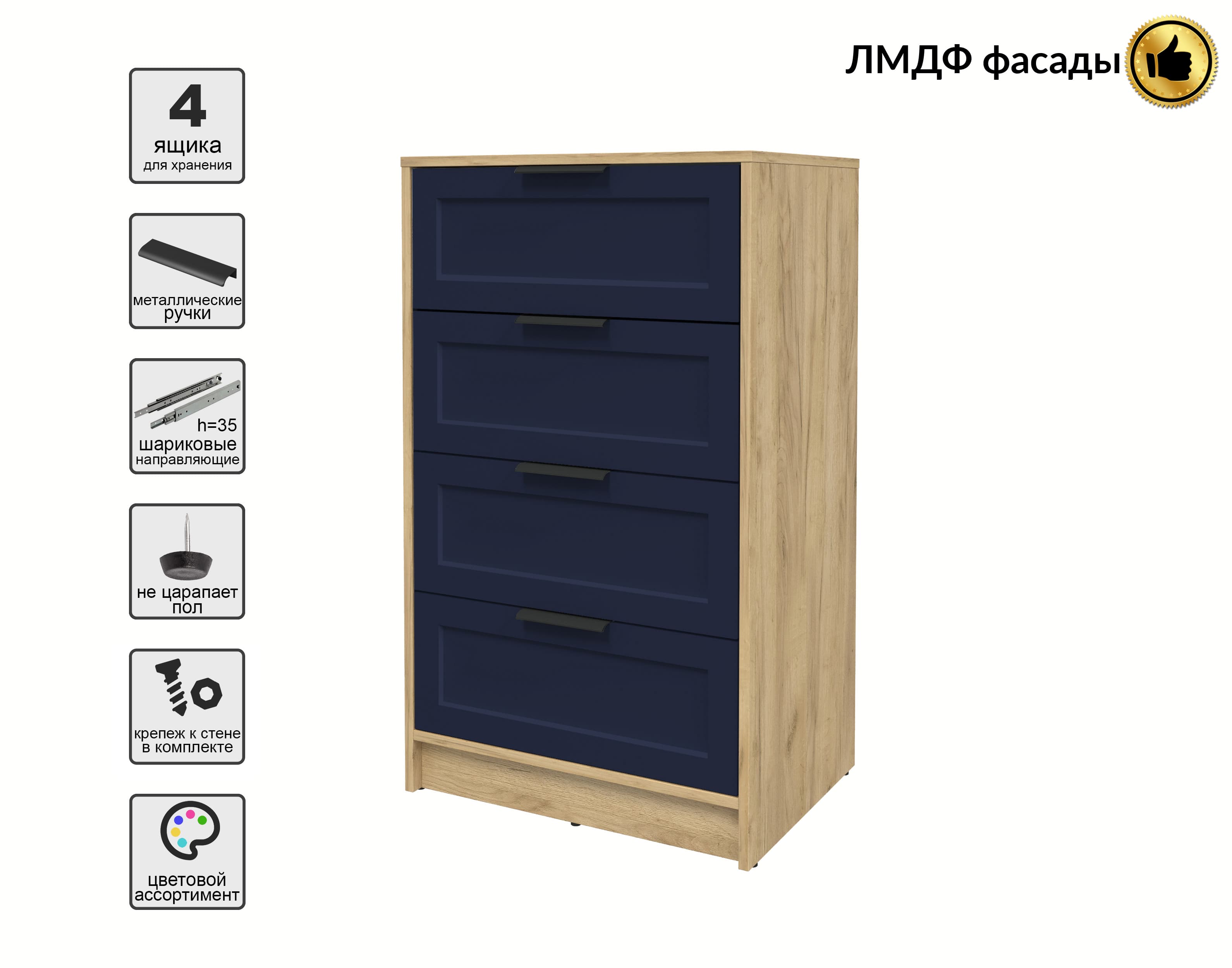 Kомод Тренд КТ-К60 (Дуб золотой ЛДСП/ Индиго ЛМДФ) Ш600 В1020 Г451