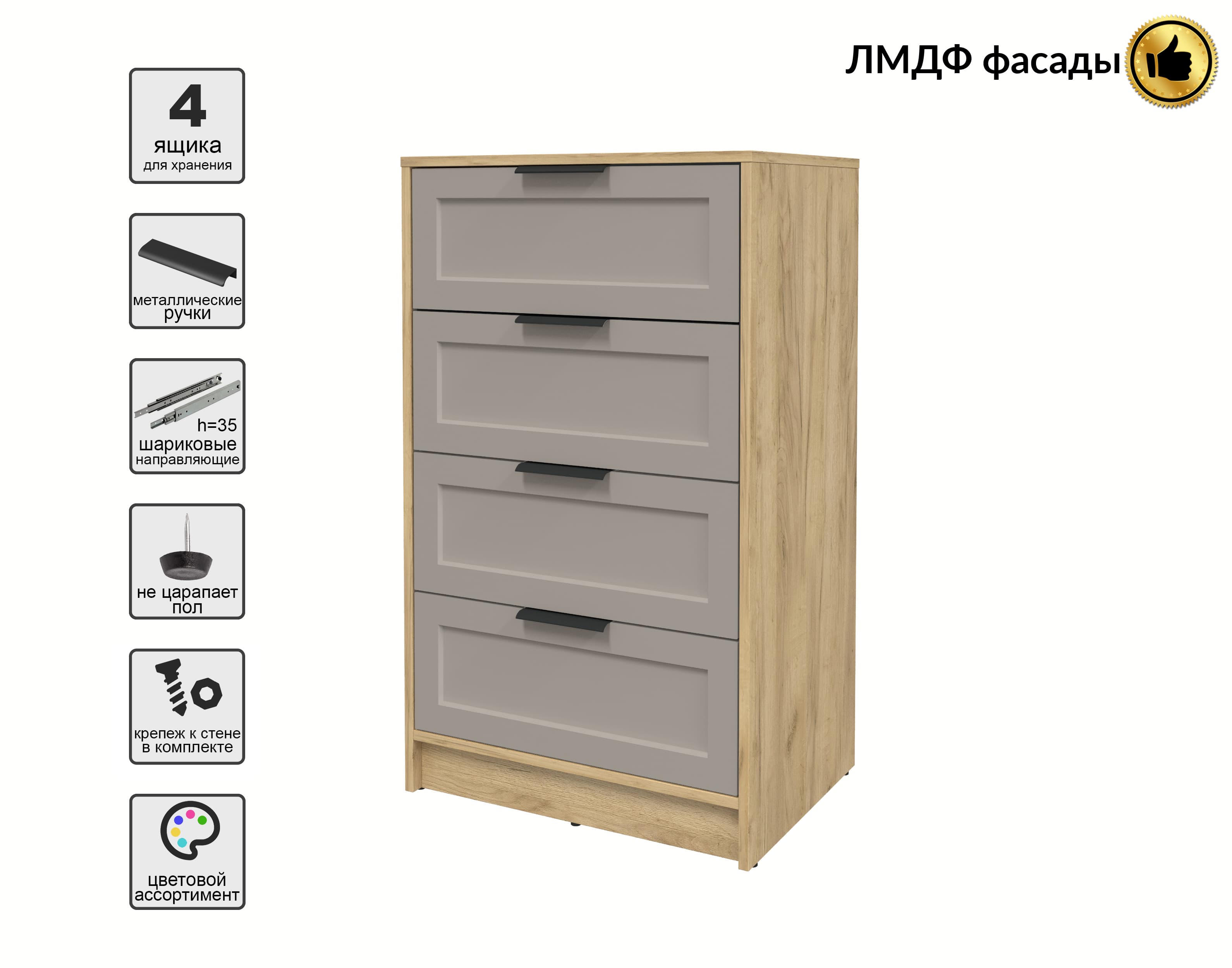 Kомод Тренд КТ-К60 (Дуб золотой ЛДСП/ Луна ЛМДФ) Ш600 В1020 Г451