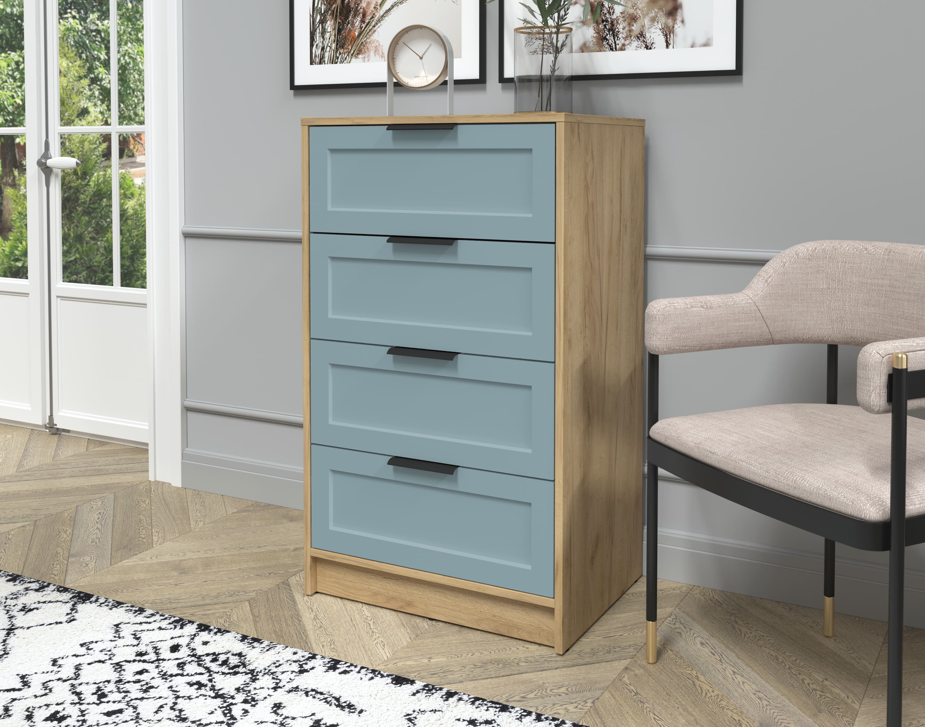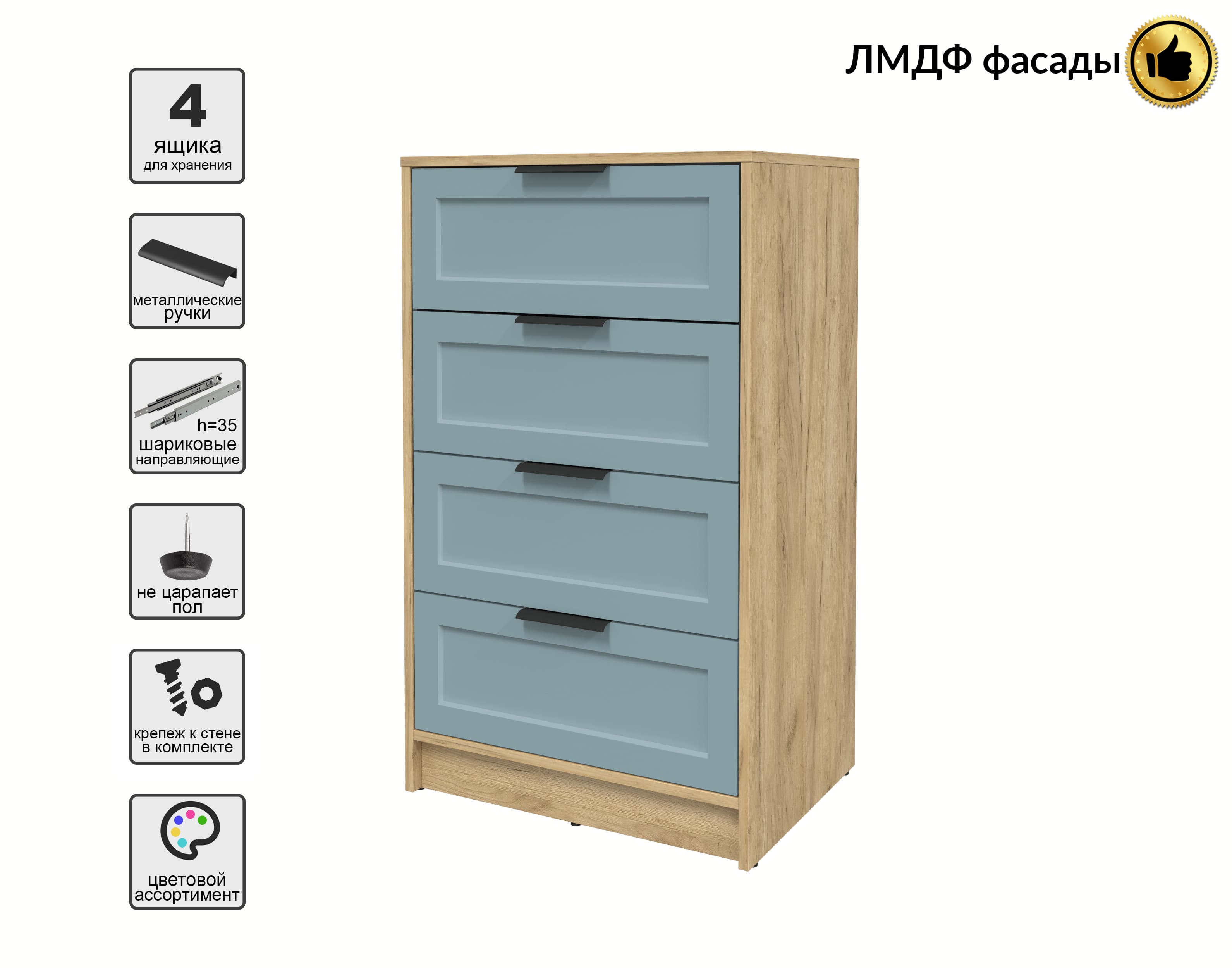 Kомод Тренд КТ-К60 (Дуб золотой ЛДСП/ Океан ЛМДФ) Ш600 В1020 Г451