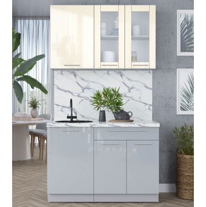 Готовая кухня ПЛАСТИК 1,4В (Ваниль глянец/ Туманный глянец)