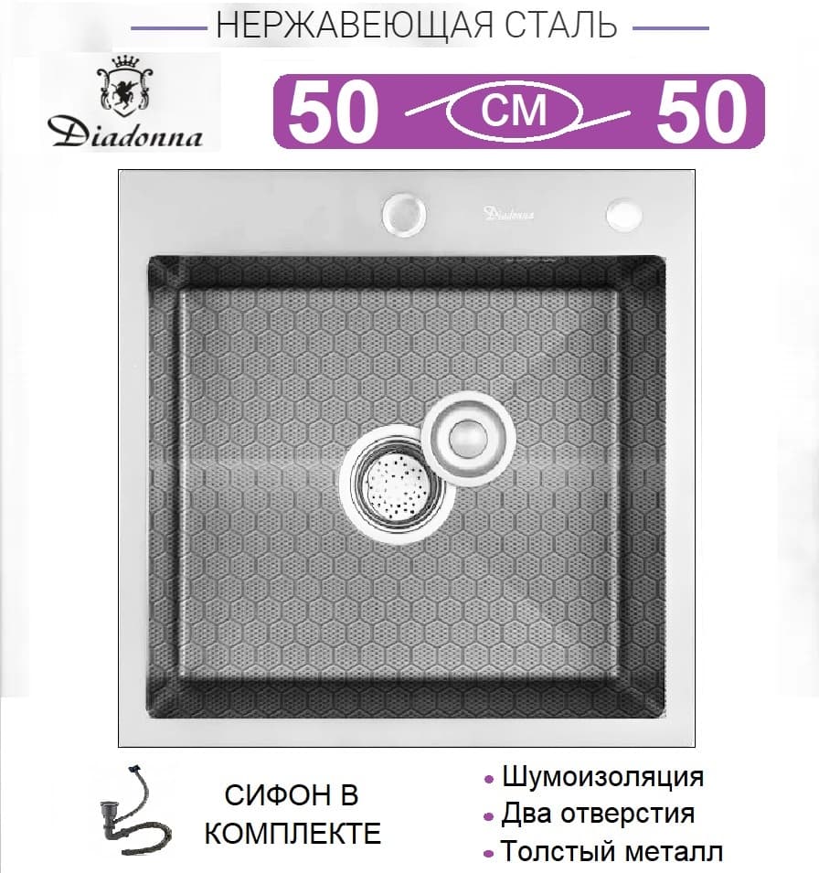 Мойка кухонная DIADONNA S5050-1 Декор Соты (сатин SATIN DECOR)