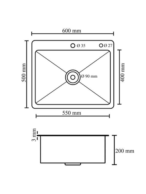 Толщина стенки мойки составляет 0,8 - 1,2 мм, толщина бортика 3 мм.