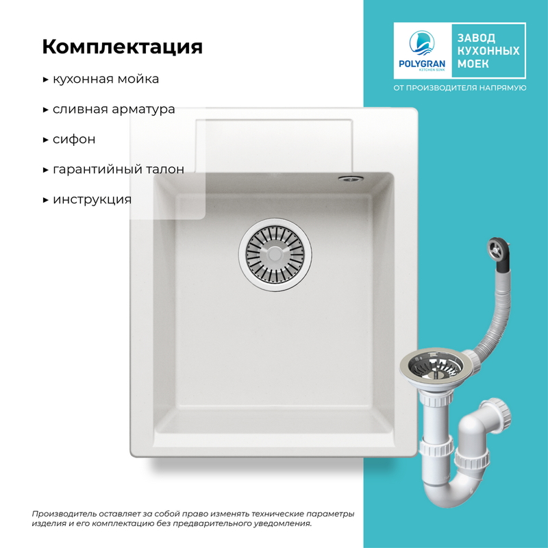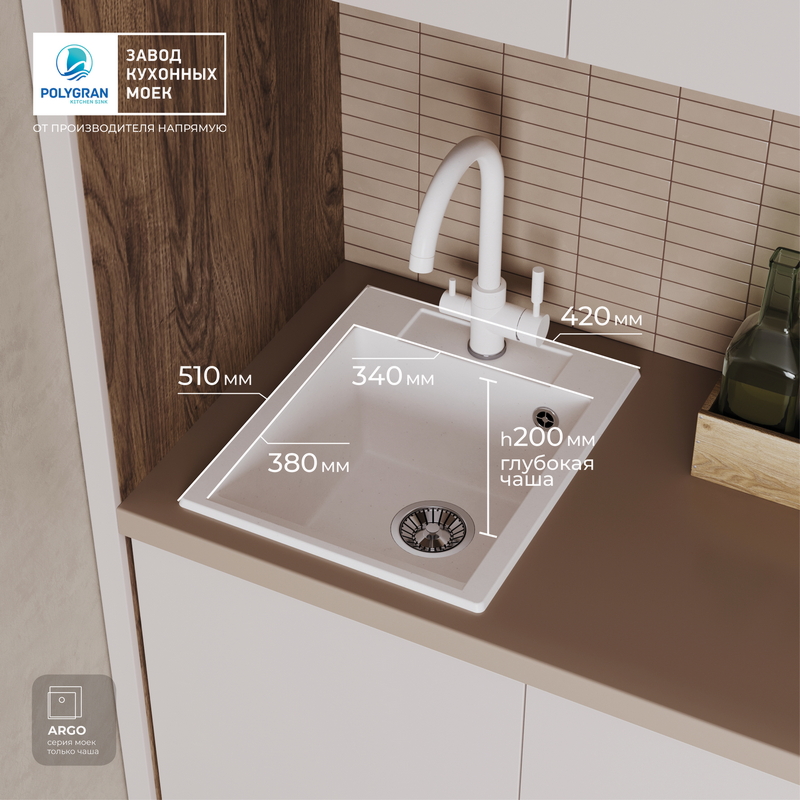 Мойка кухонная POLYGRAN ARGO 420 (белый хлопок №36)