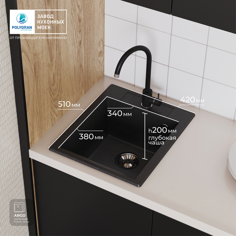 Мойка кухонная POLYGRAN ARGO 420 (черный №16)