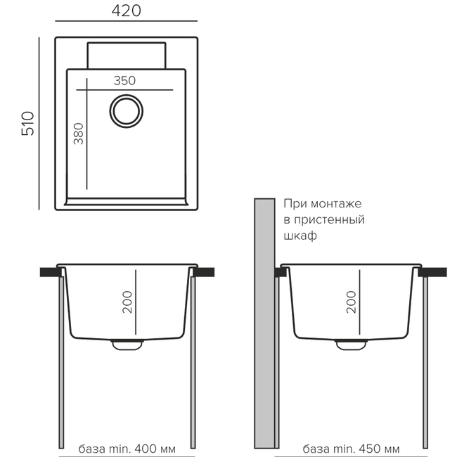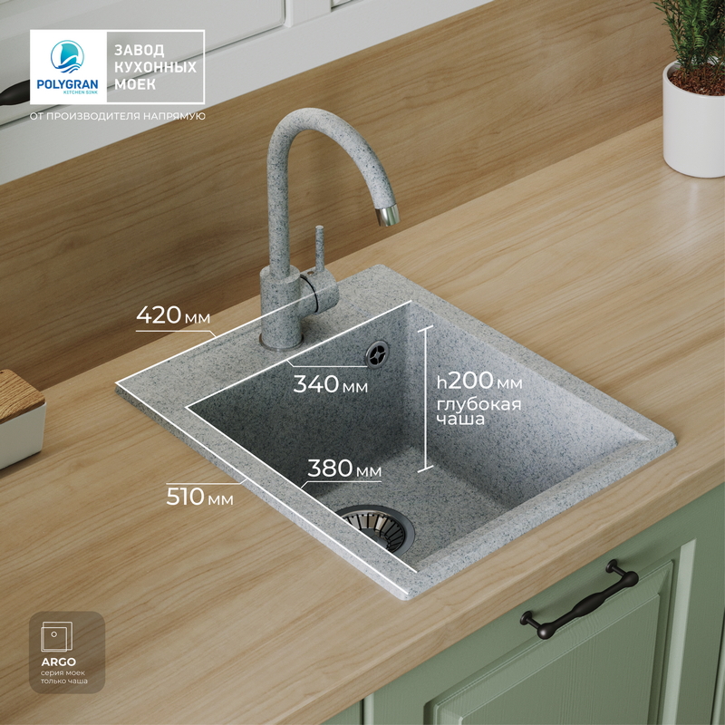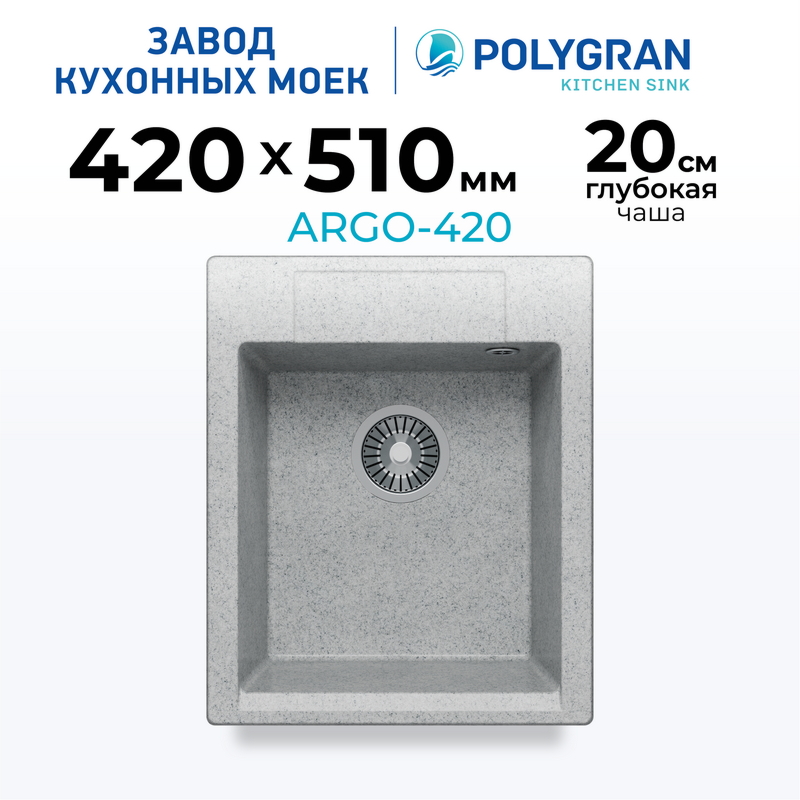 Мойка кухонная POLYGRAN ARGO 420 (светло-серый №314)