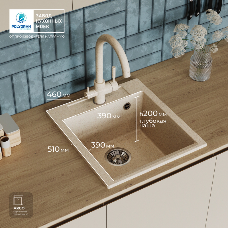 Мойка кухонная POLYGRAN ARGO 460 (опал №328)