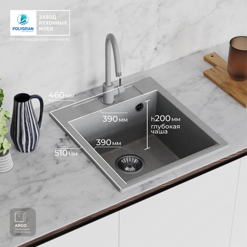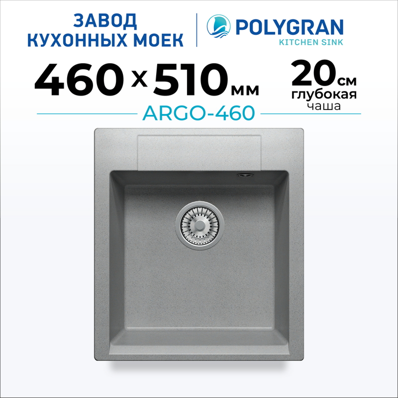 Мойка кухонная POLYGRAN ARGO 460 (серый №14)