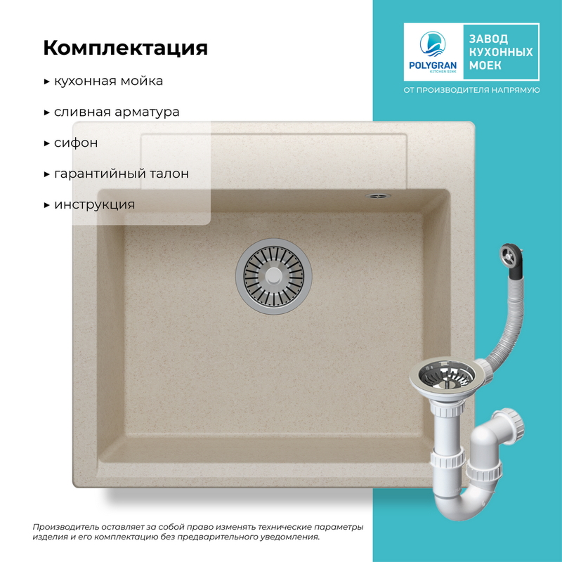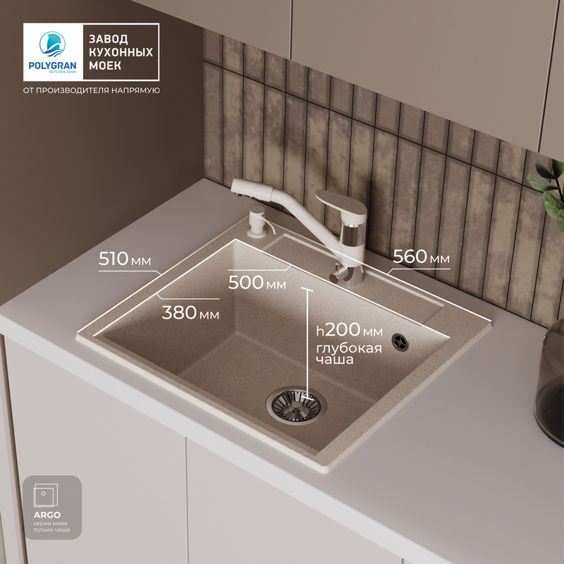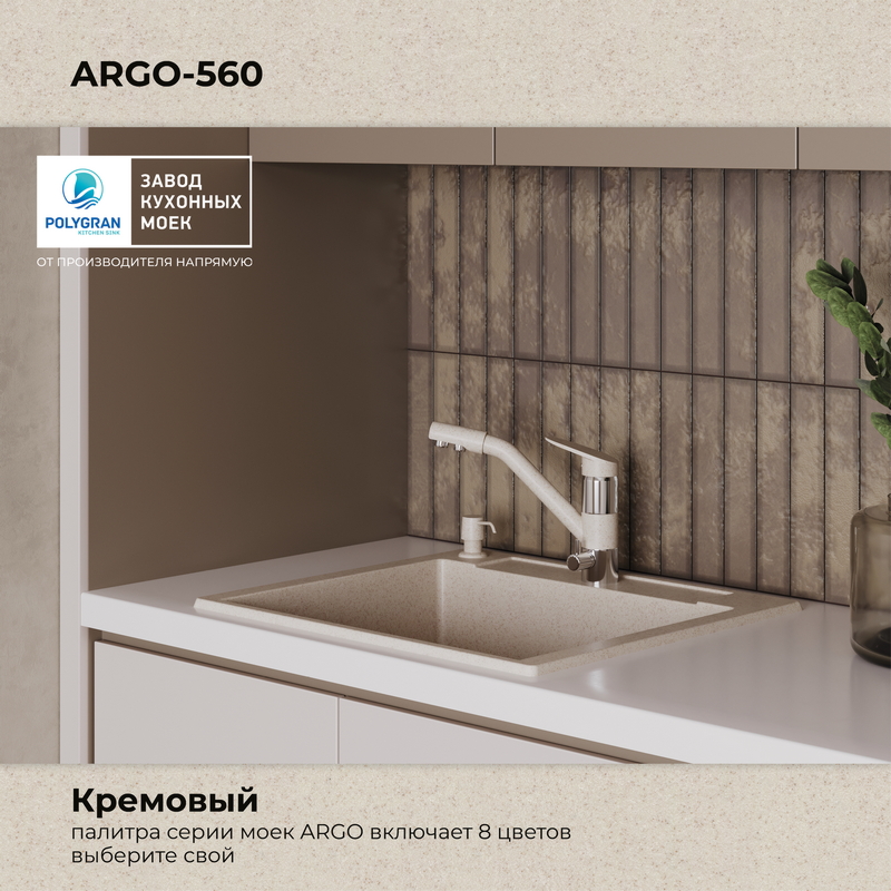 Мойка кухонная POLYGRAN ARGO 560 (кремовый №327)