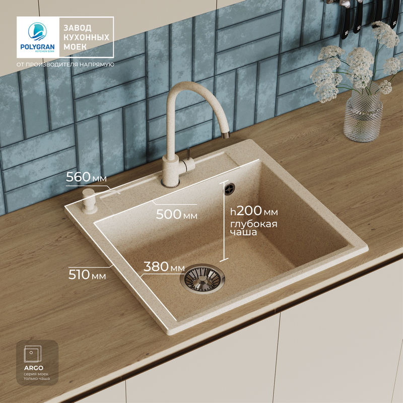 Мойка кухонная POLYGRAN ARGO 560 (опал №328)