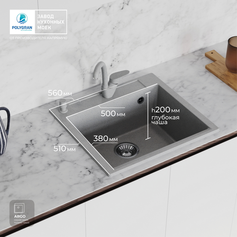 Мойка кухонная POLYGRAN ARGO 560 (серый №14)
