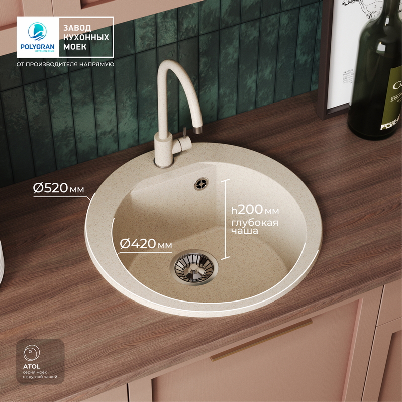 Мойка кухонная POLYGRAN ATOL 520 (опал №328)