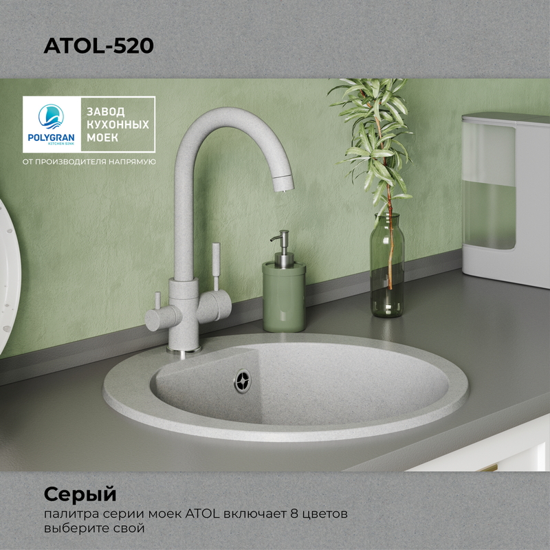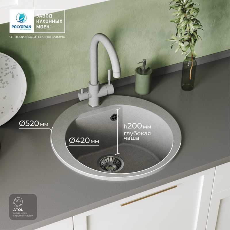 Мойка кухонная POLYGRAN ATOL 520 (серый №14)