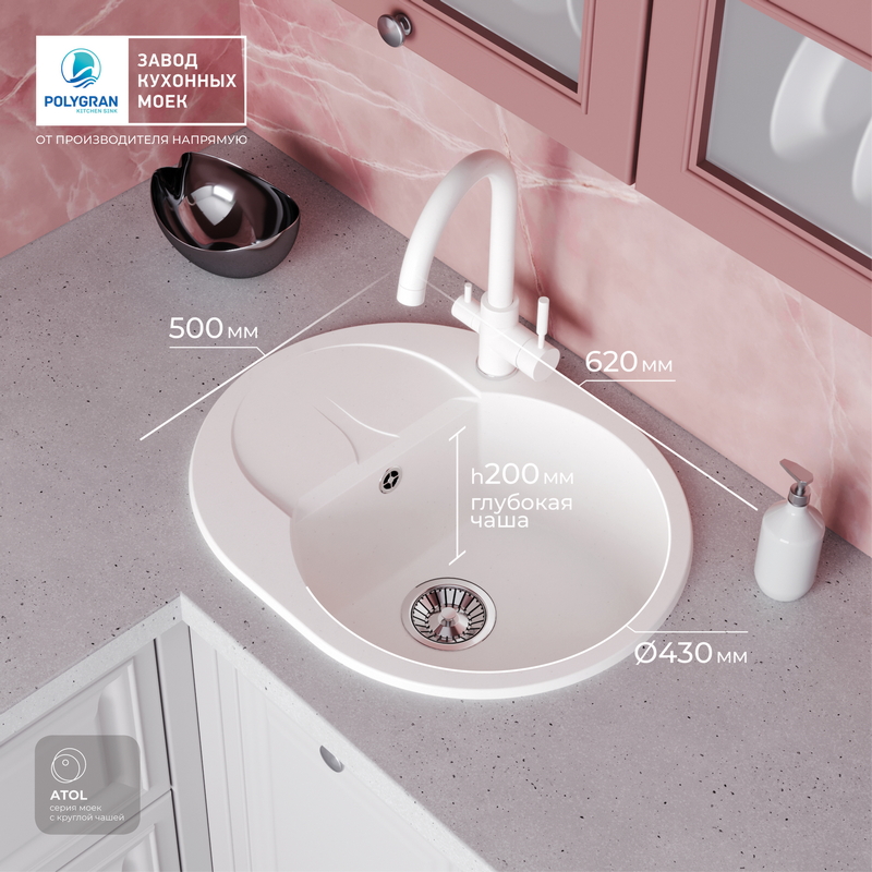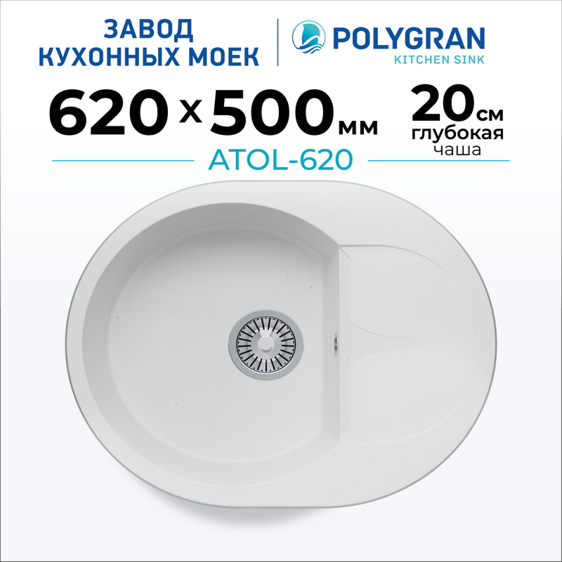 Мойка кухонная POLYGRAN ATOL 620 (белый хлопок №36)