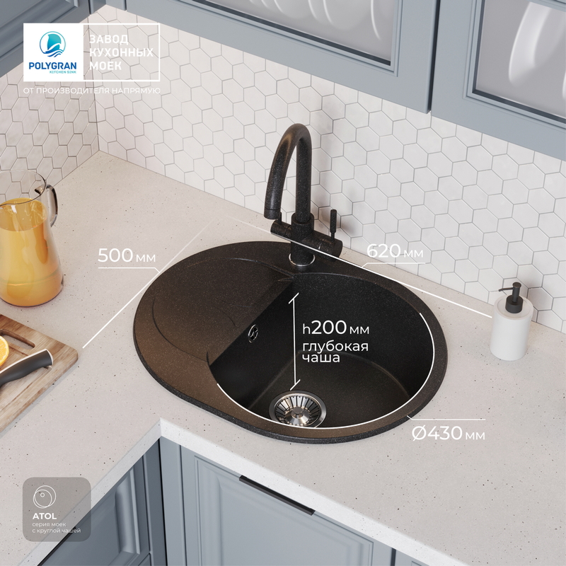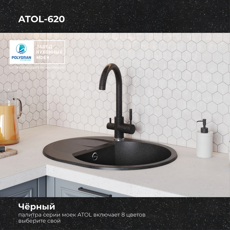 Мойка кухонная POLYGRAN ATOL 620 (черный №16)