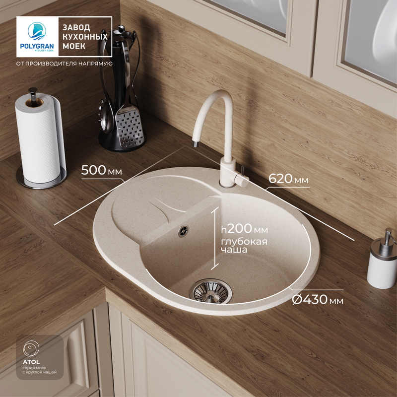 Мойка кухонная POLYGRAN ATOL 620 (кремовый №327)