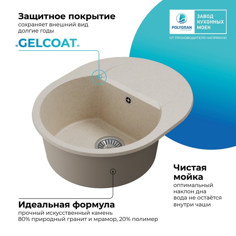 Polygran — российский бренд, специализирующийся на производстве высококачественных кухонных моек из искусственного камня. Компания успешно сочетает современные технологии и стильный дизайн, предлагая долговечные и функциональные изделия. Мойки Polygran отличаются прочностью, устойчивостью к повреждениям и высоким температурам.