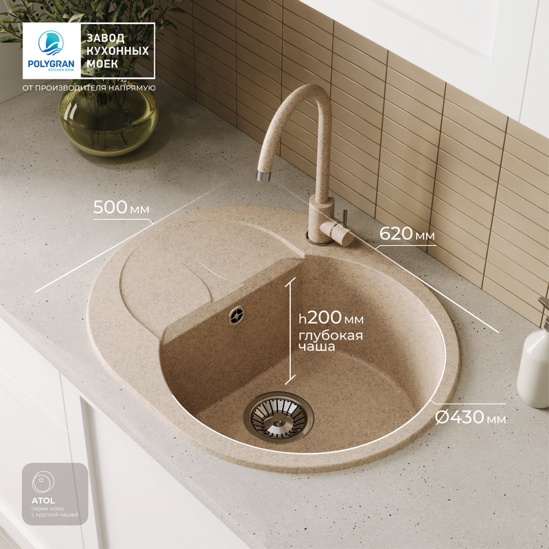 Мойка кухонная POLYGRAN ATOL 620 (песочный №302)