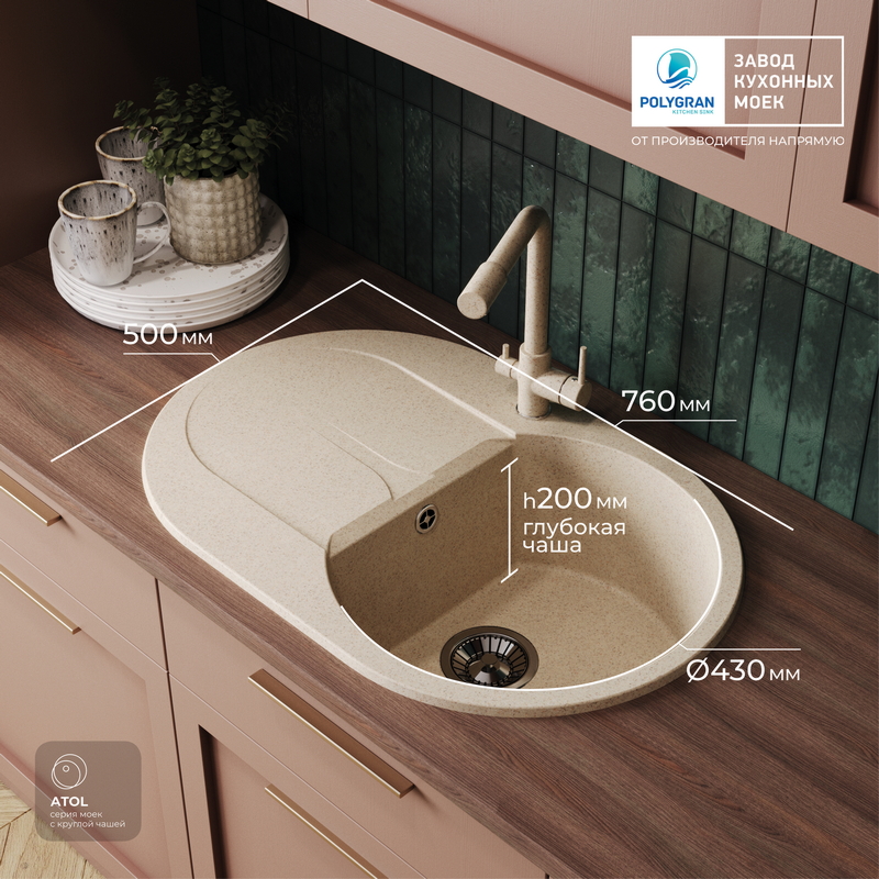 Мойка кухонная POLYGRAN ATOL 760 (опал №328)