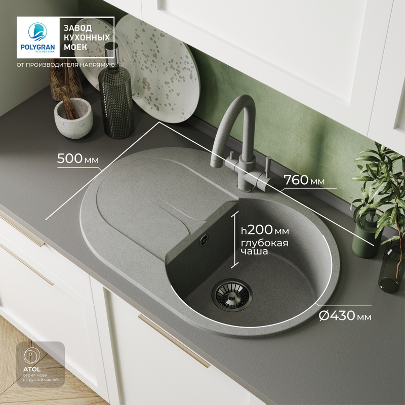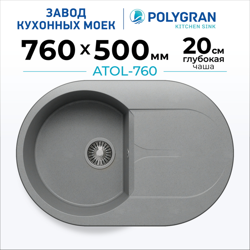 Мойка кухонная POLYGRAN ATOL 760 (серый №14)