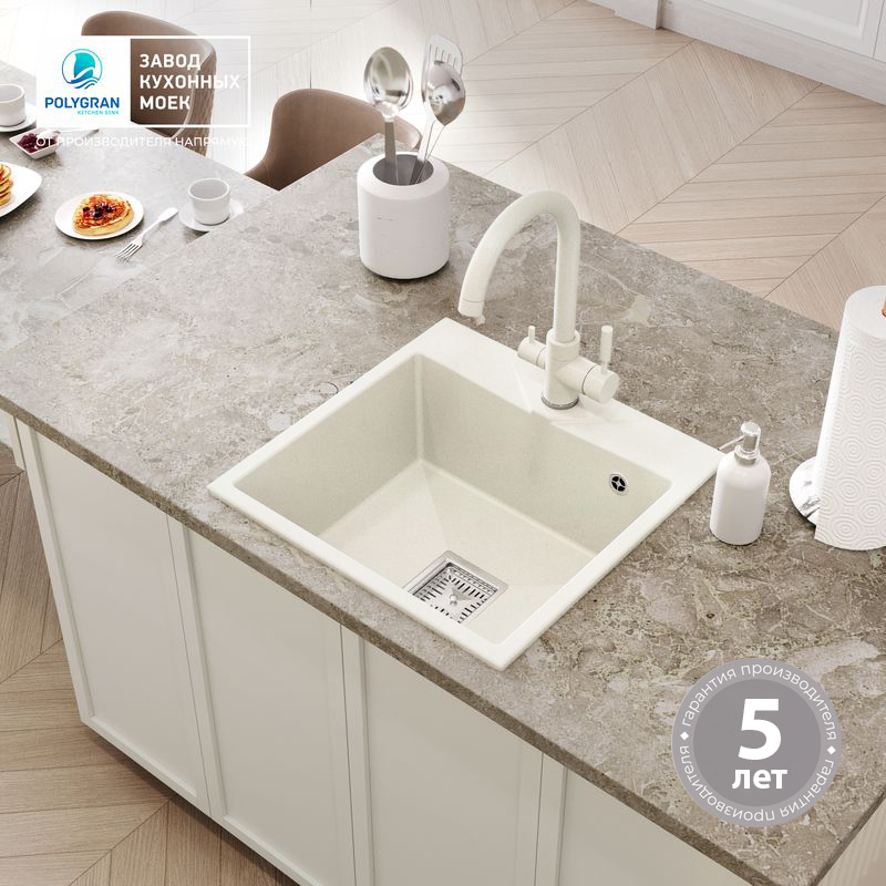 Мойка кухонная POLYGRAN BLADE 500 (белый хлопок №36)