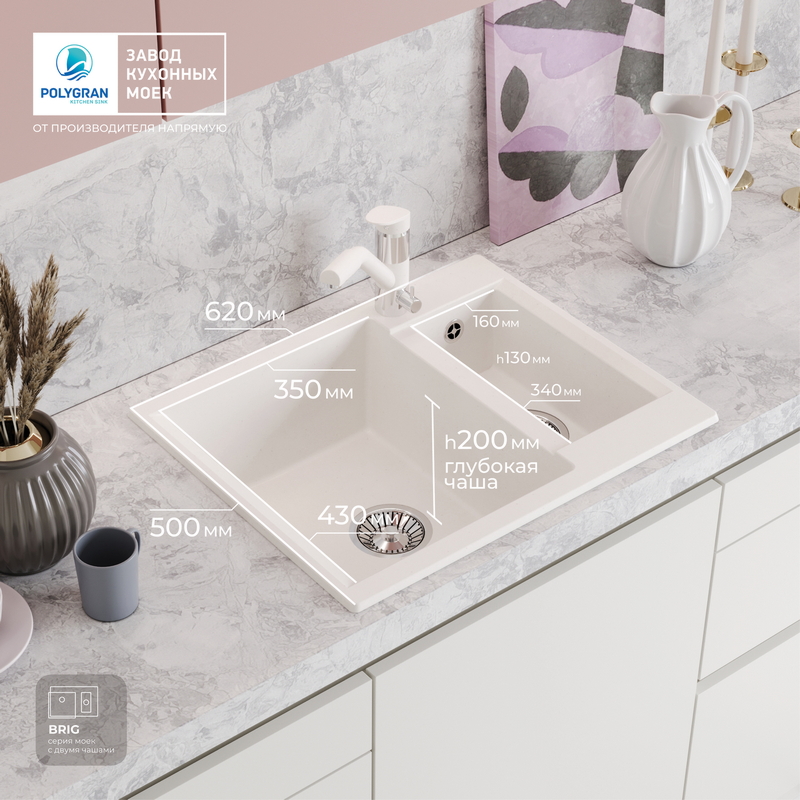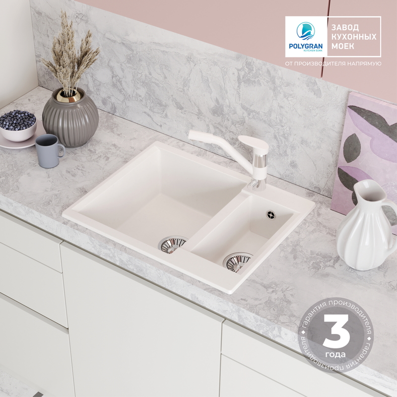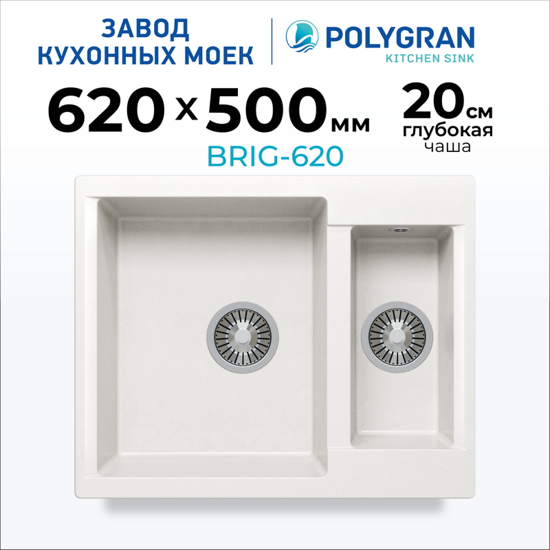 Мойка кухонная POLYGRAN BRIG 620 (белый хлопок №36)