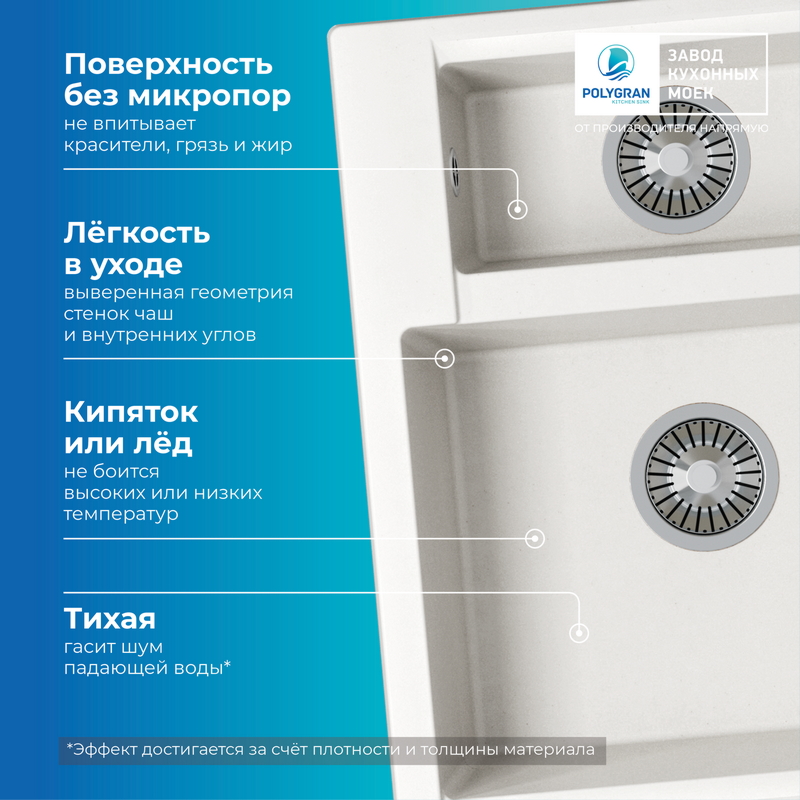Polygran — российский бренд, специализирующийся на производстве высококачественных кухонных моек из искусственного камня. Компания успешно сочетает современные технологии и стильный дизайн, предлагая долговечные и функциональные изделия. Мойки Polygran отличаются прочностью, устойчивостью к повреждениям и высоким температурам.