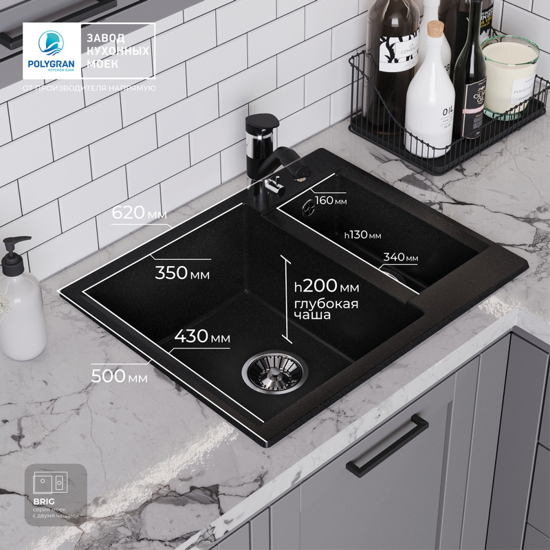 Мойка кухонная POLYGRAN BRIG 620 (черный №16)