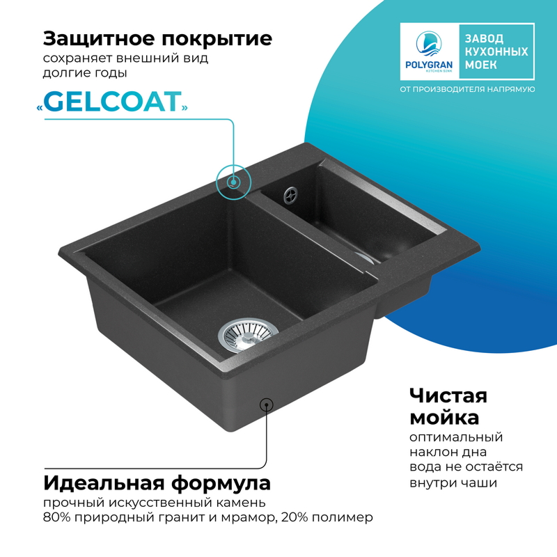 Polygran — российский бренд, специализирующийся на производстве высококачественных кухонных моек из искусственного камня. Компания успешно сочетает современные технологии и стильный дизайн, предлагая долговечные и функциональные изделия. Мойки Polygran отличаются прочностью, устойчивостью к повреждениям и высоким температурам.