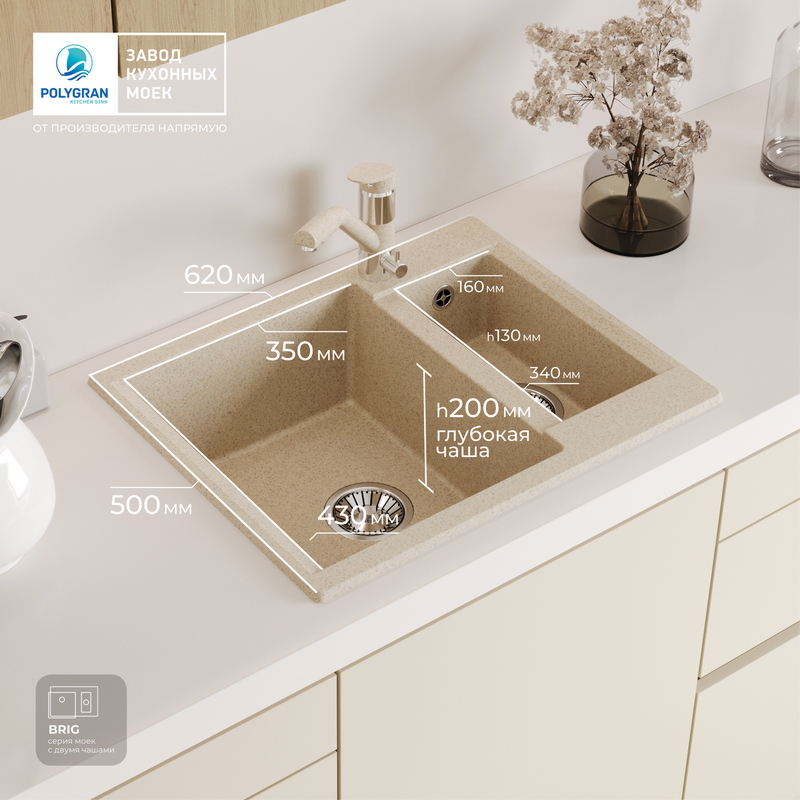 Мойка кухонная POLYGRAN BRIG 620 (опал №328)